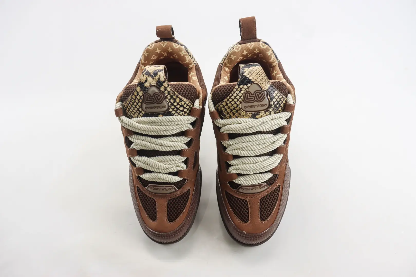 The Louis Vuitton Trainer is undoubtedly one of the successful sneakers launched by luxury brands, but the exploration will not stop and will also bring a full skate shoe series in the spring of 2023. The series in the picture is reminiscent of the 90s chunky skate shoes, with leather and mesh uppers. The oversized silhouette and thick shoelaces are very eye-catching, and it is expected to have a considerable number of color combinations like the trainer. Based on previous runway skateboarding shoes, this chunky trend may become even stronger next year.