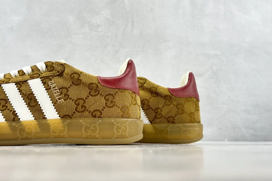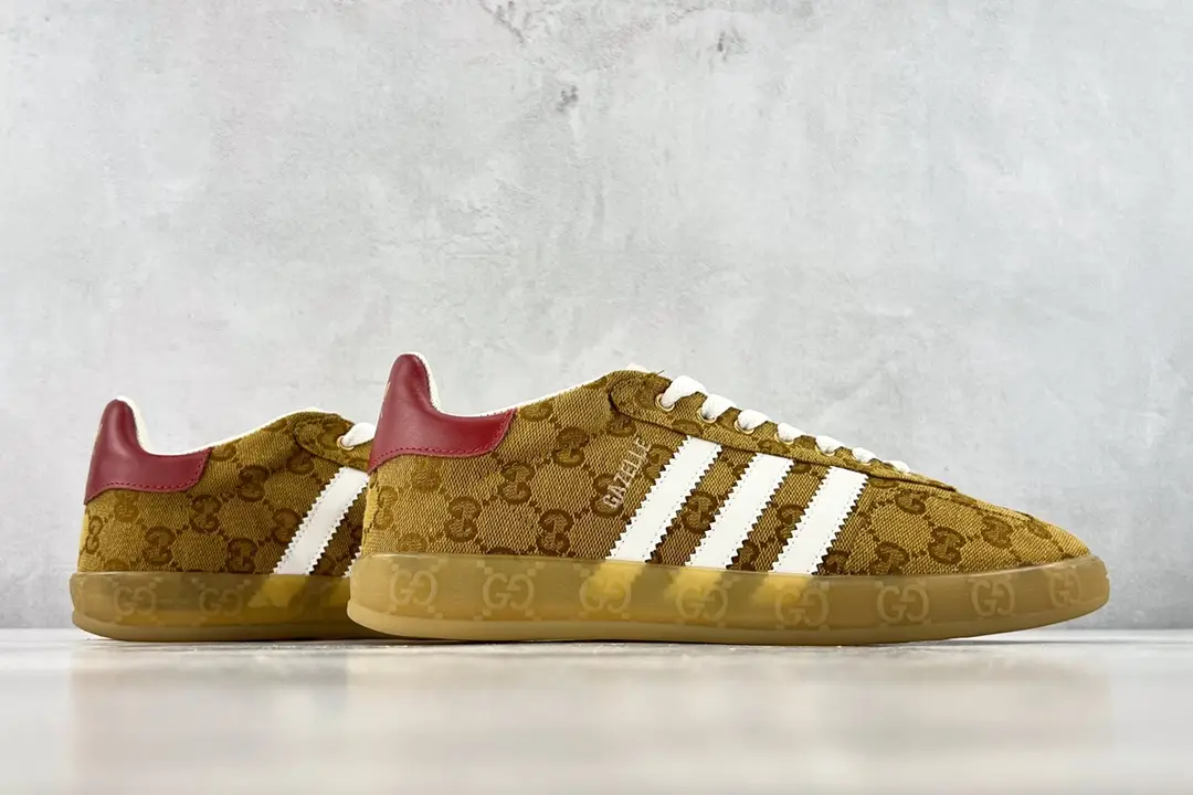 Both parties take Adidas Originals GAZELLE as the blueprint, retaining the three lines of the shoe body while releasing diverse plasticity through color schemes such as canvas, suede, snake like texture, and Gucci logo elements