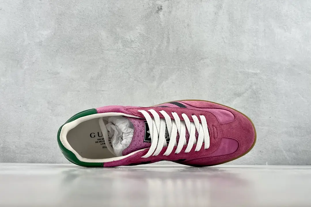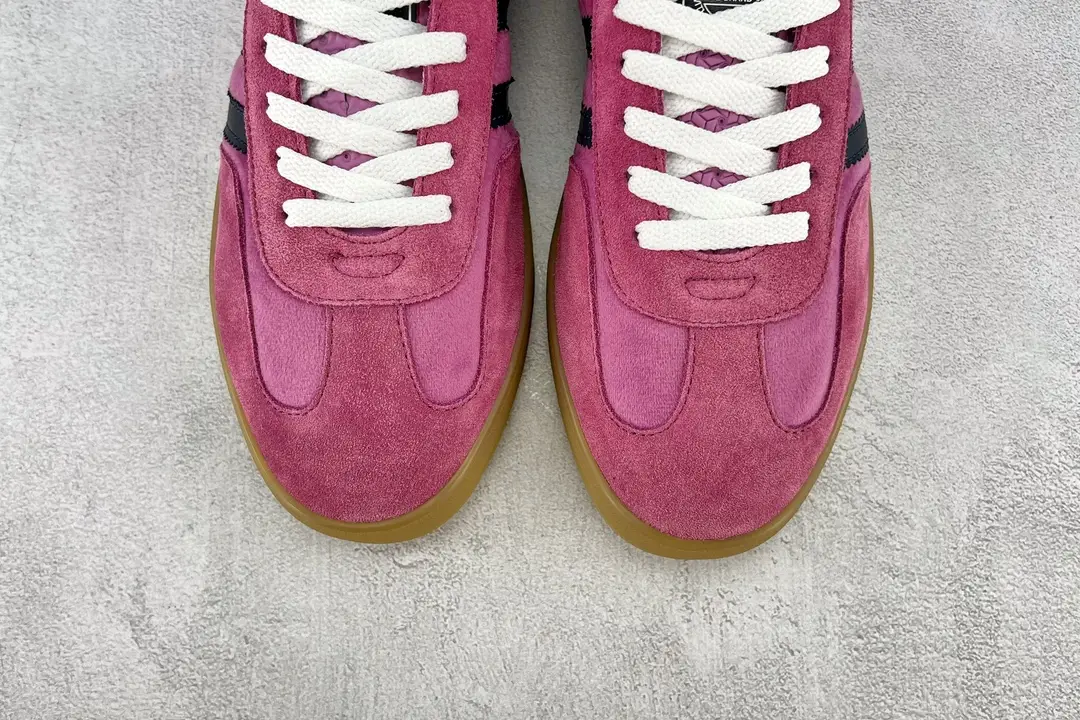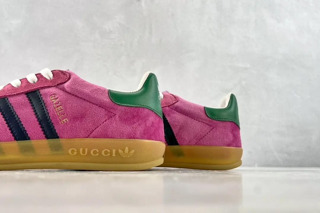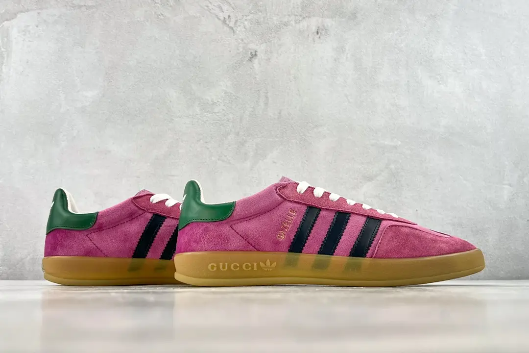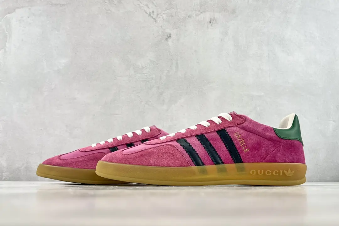 Both parties take Adidas Originals GAZELLE as the blueprint, retaining the three lines of the shoe body while releasing diverse plasticity through color schemes such as canvas, suede, snake like texture, and Gucci logo elements