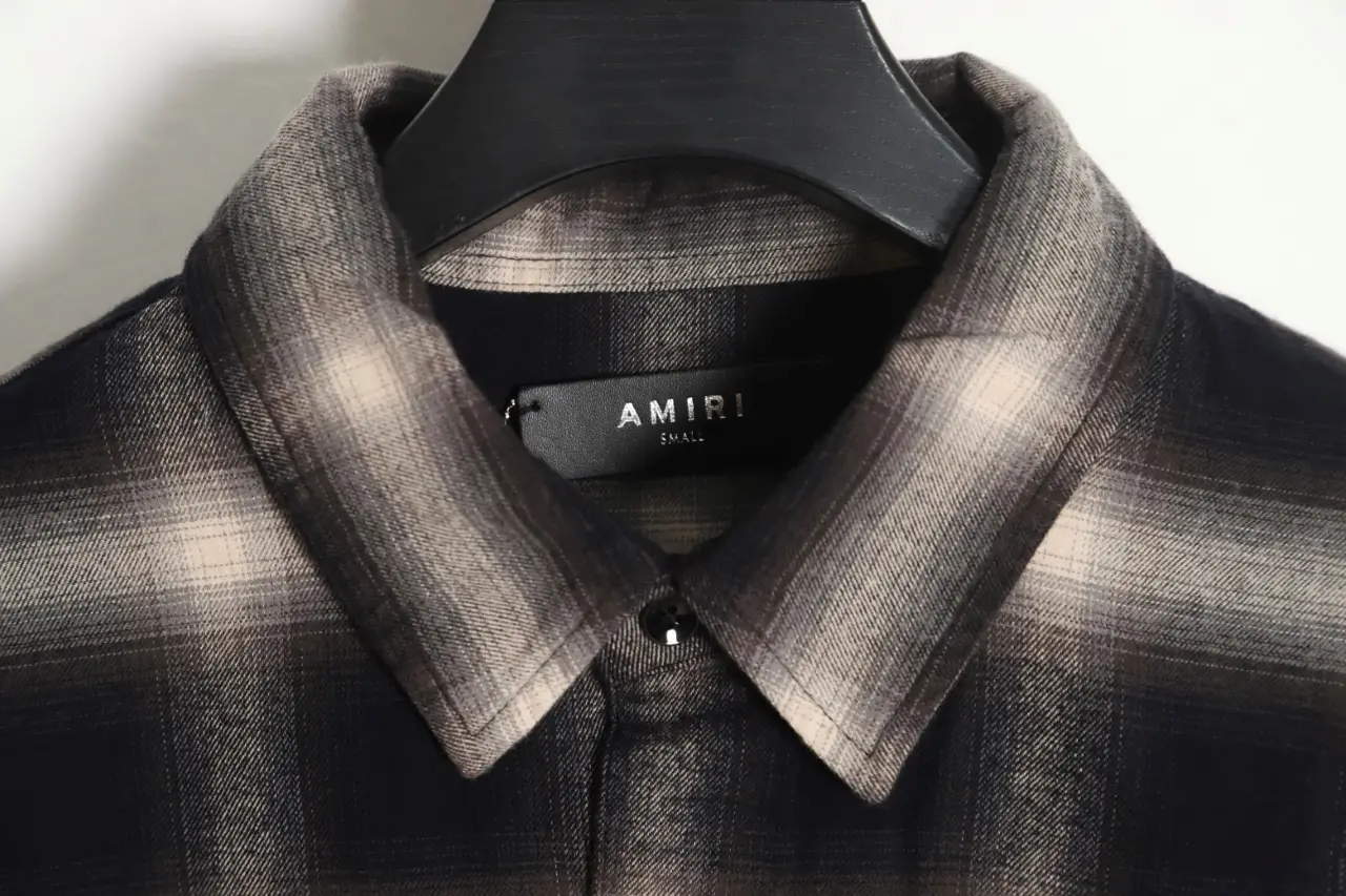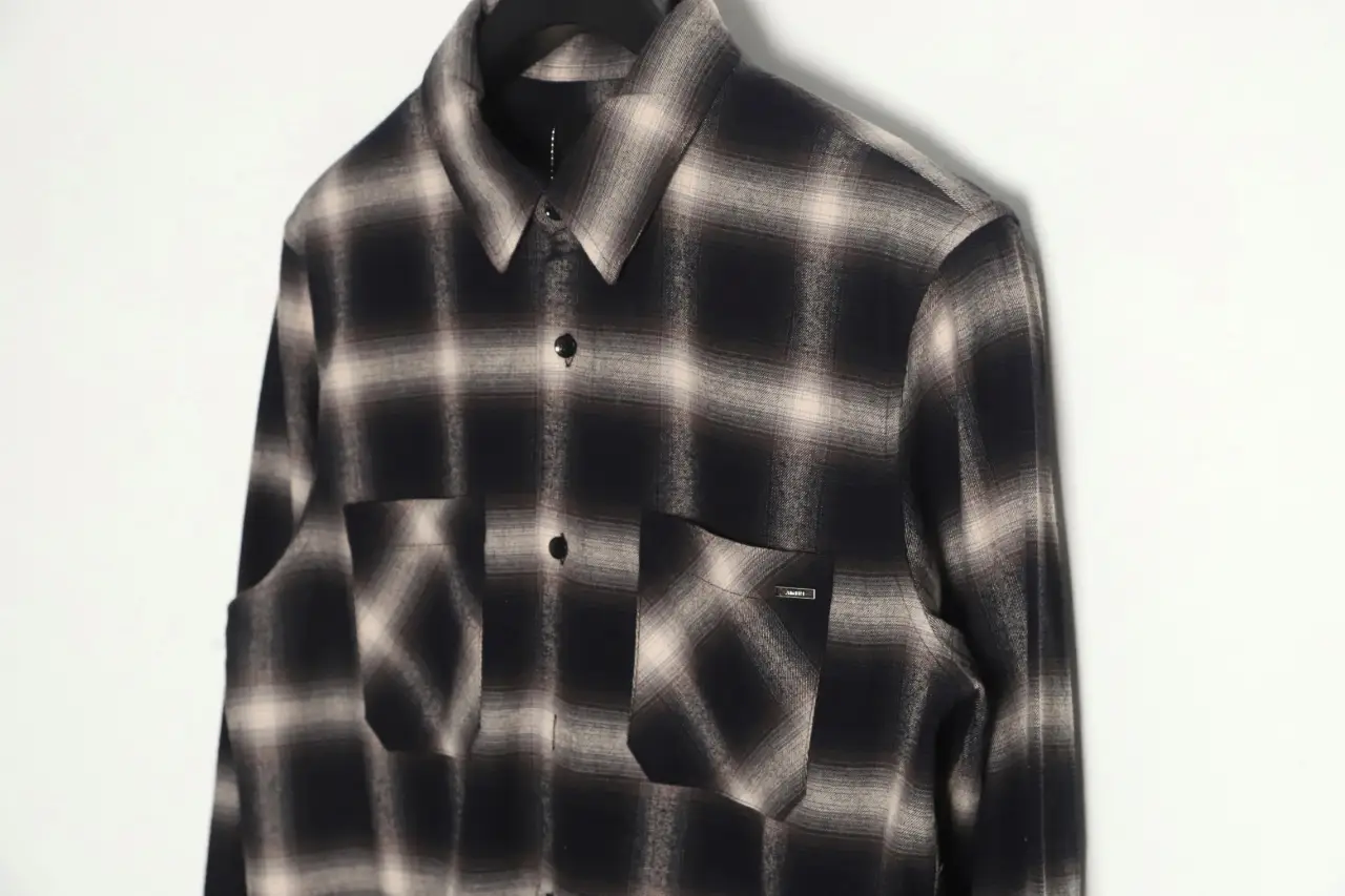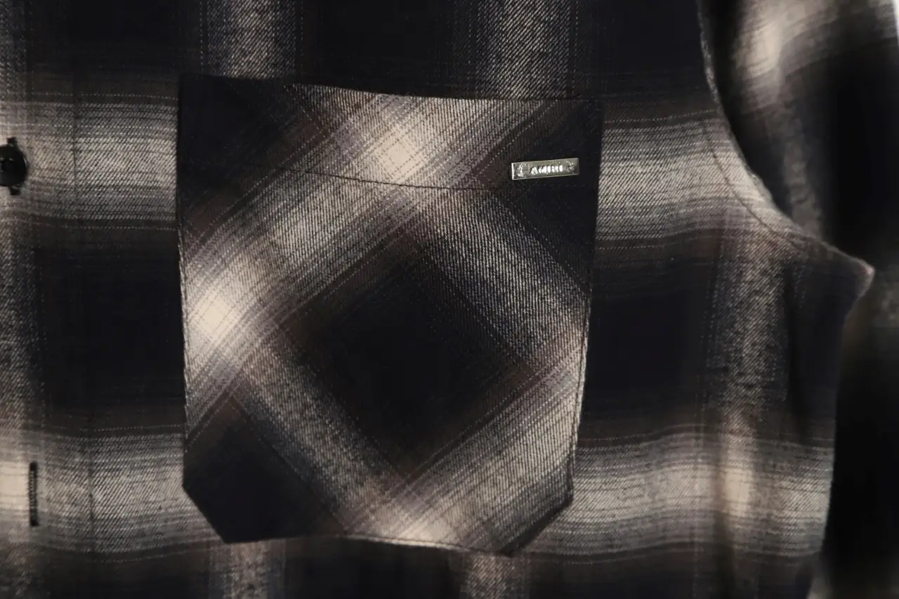 Amiri Black Grey Core Shadow Plaid Cotton-Blend Flannel Shirt