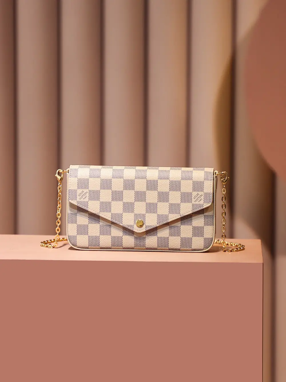 Pochette Félicie in Damier Azur canvas.