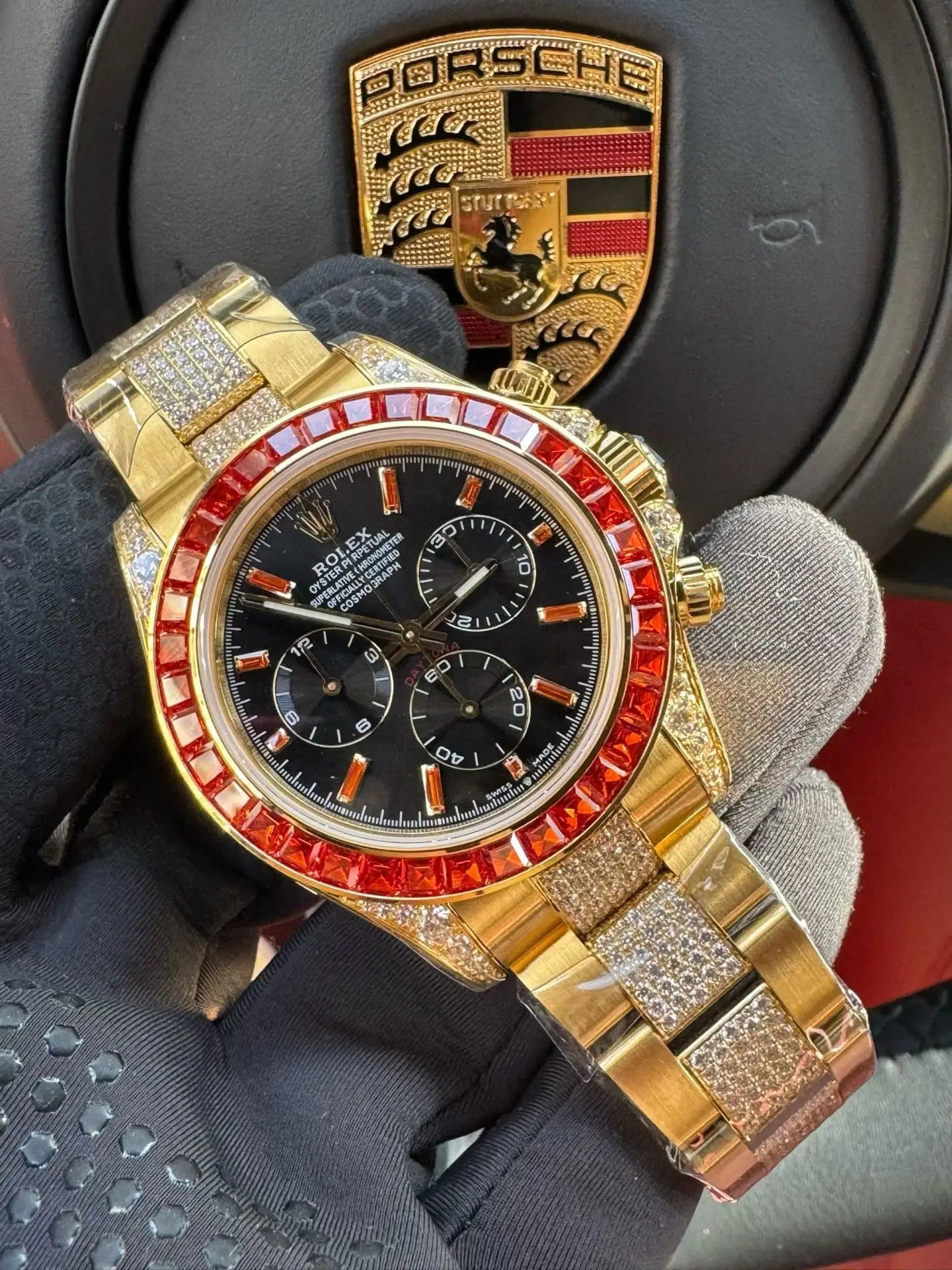 Rolex Cosmograph Daytona Yellow Gold Orange Sapphire Bezel