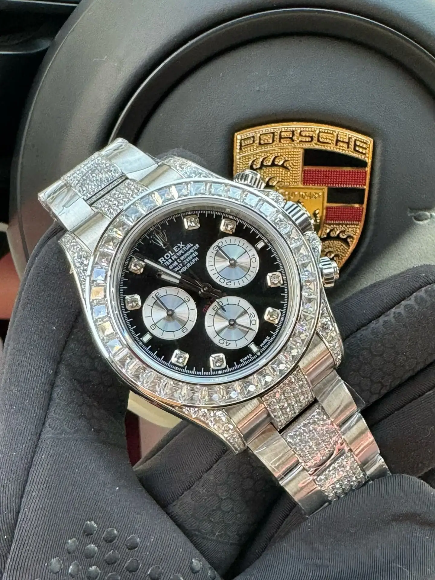 Rolex Cosmograph Daytona Diamond Bezel & Pave Bracelet Black Dial