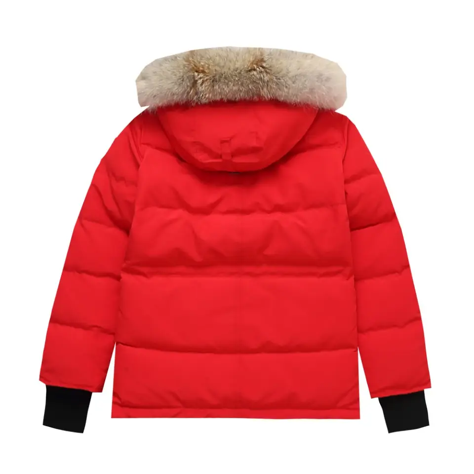 Create a top tier couple style polar warm outdoor series with a detachable fur collar and hooded Parker down jacket. The first goose jacket of 2024