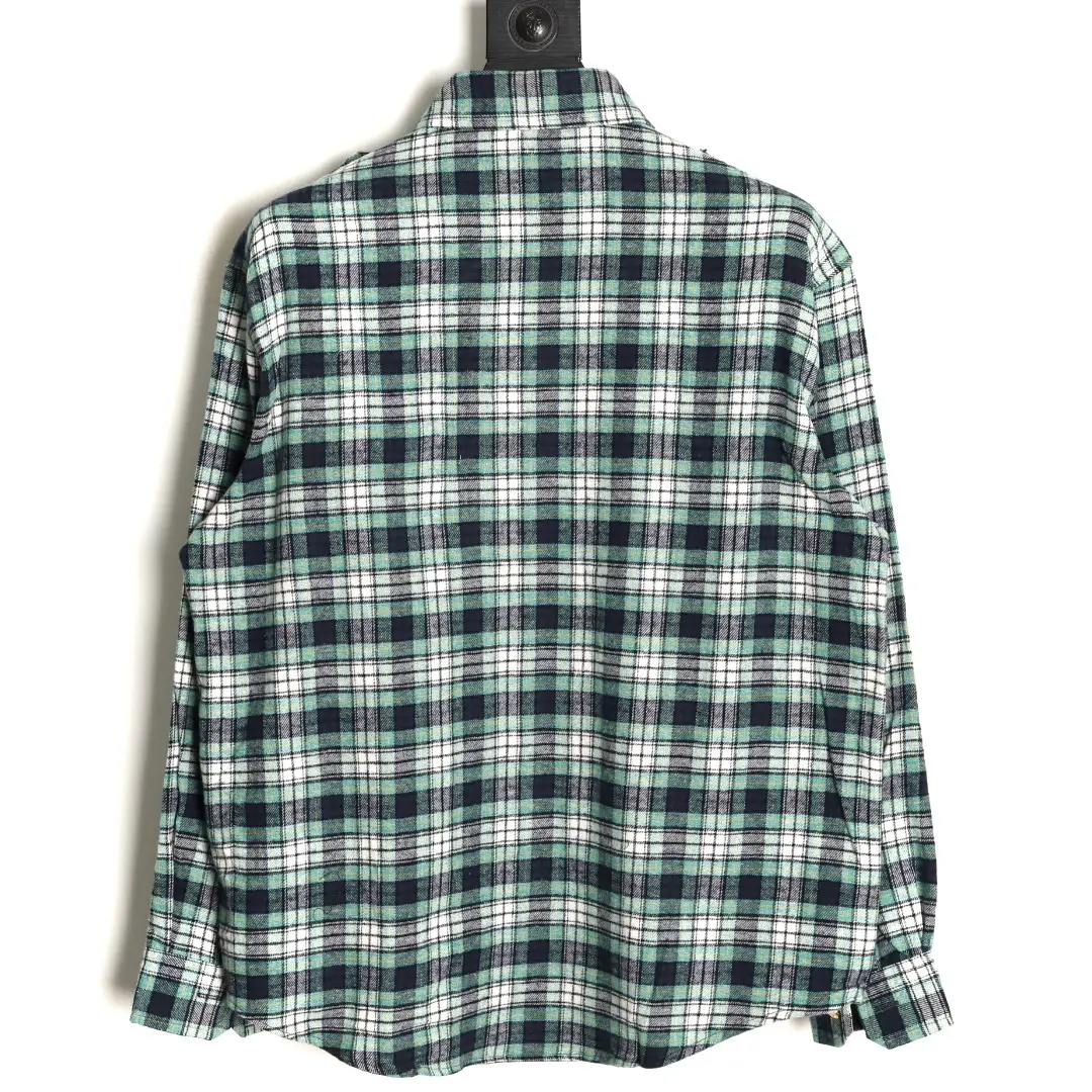 Fabric, fabric weaving and dyeing, shirt plaid with shoulder patches, adding a casual atmosphere, single row open top button embellishment echoing the double pocket design of the front, Arc de Triomphe button, can be paired with same season bottoms to create a fashionable look, customized accessories, unisex!