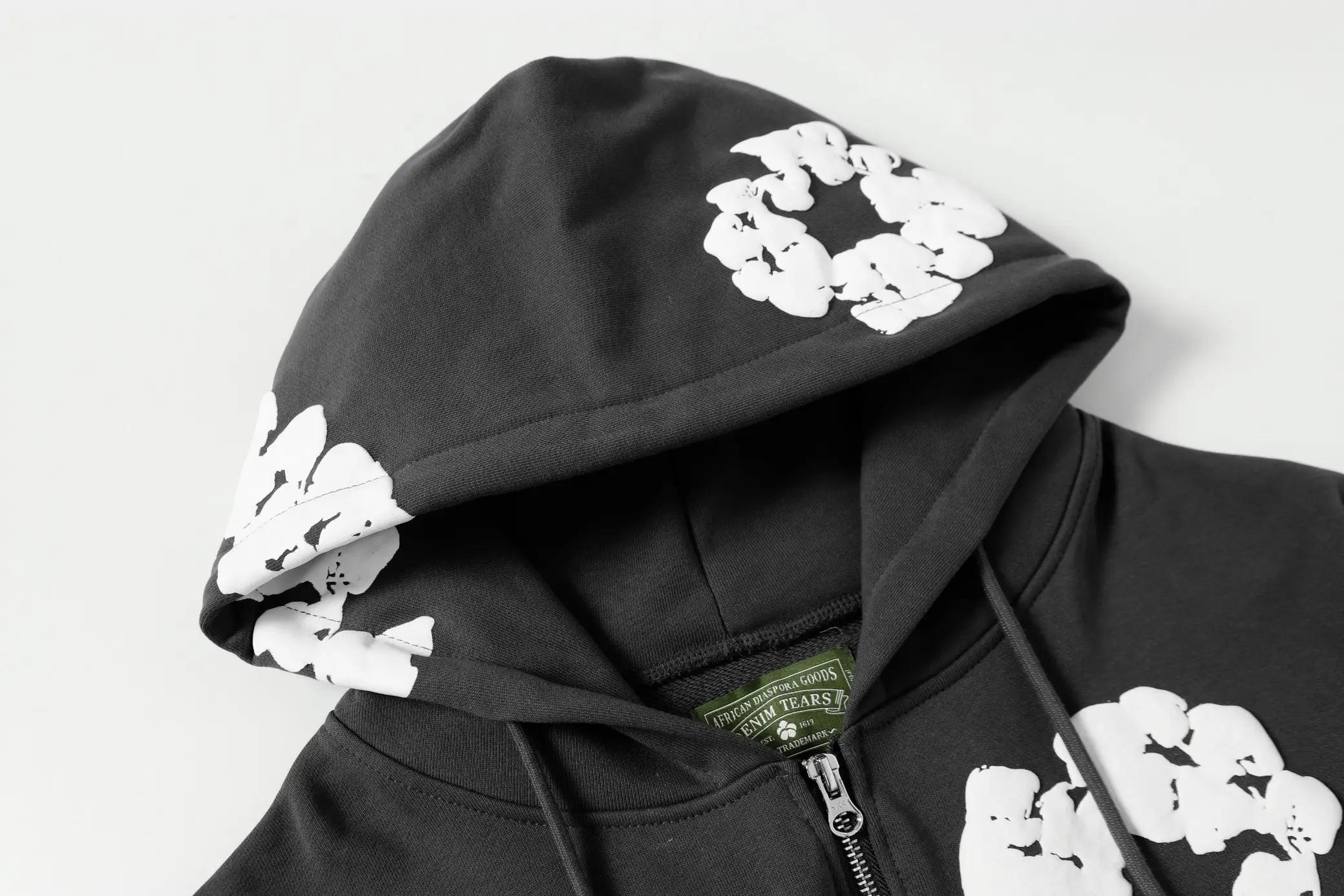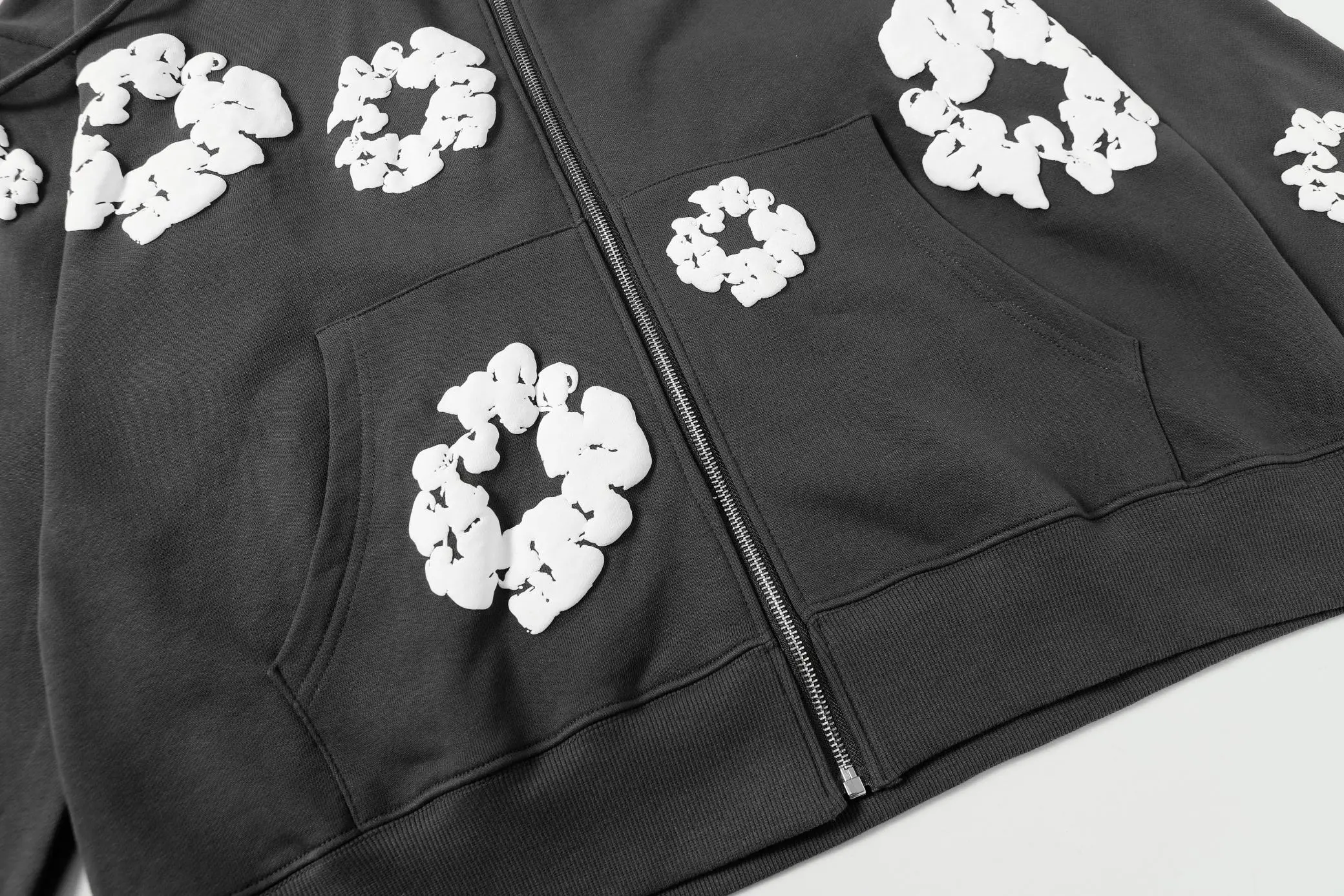 Brand high-quality foam printed hooded sweatshirt zipper jacket