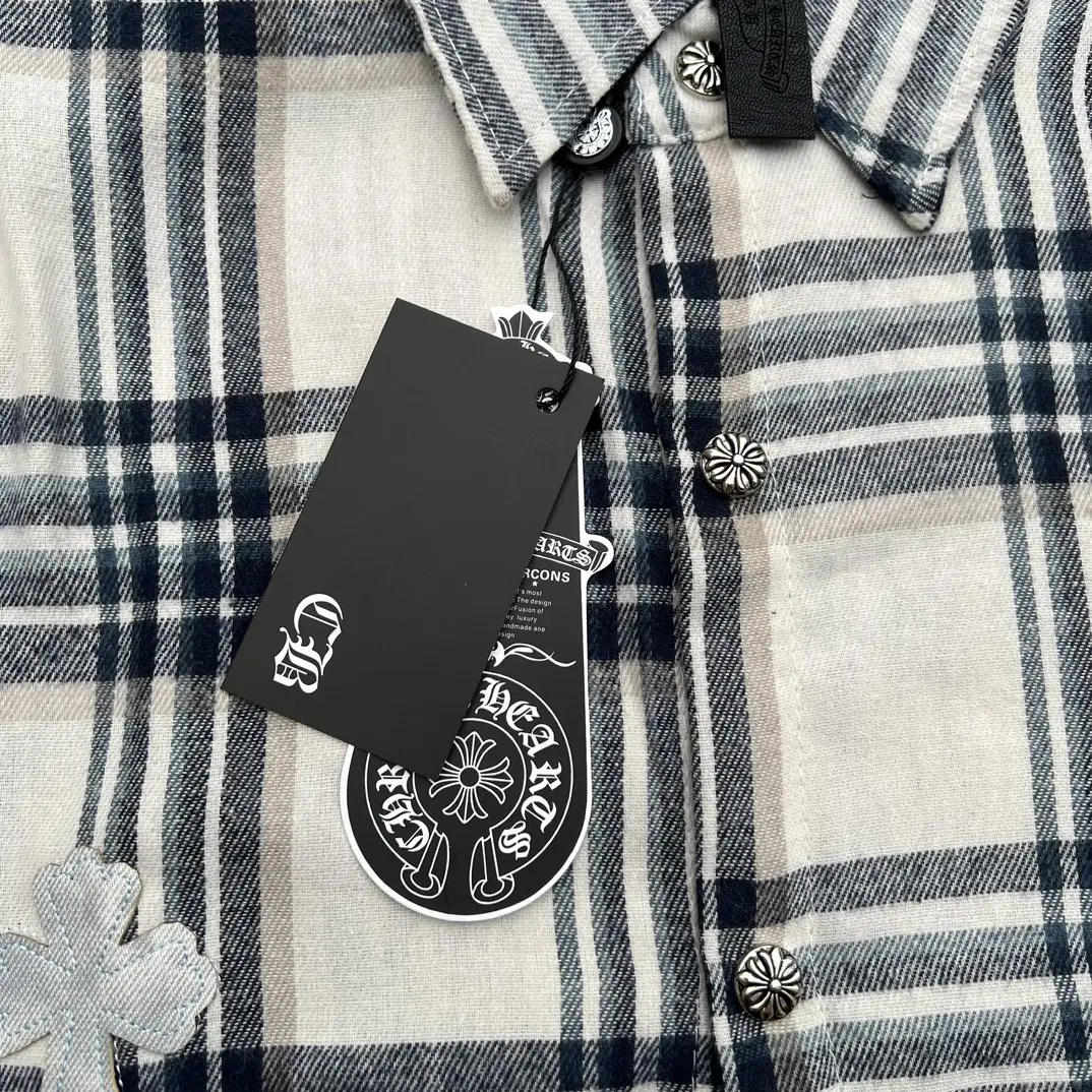 The luxurious dark high street belongs to Hollywood’s luxury Croheart, and the latest 22SS couple leather cross short sleeved T-shirt embodies its unique style! Black thick cotton, goat skin patch embroidery, custom metal hardware hand sewn, silicone glossy oil print, multiple materials collide to create a unique texture, while integrating Chrome Hearts medieval style Sanskrit font, classic horseshoe, creating a unique and charming dark texture under beautiful curves and all black shadows, full of artistic sense!