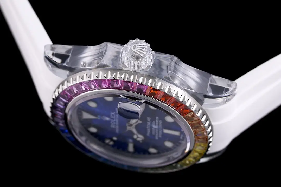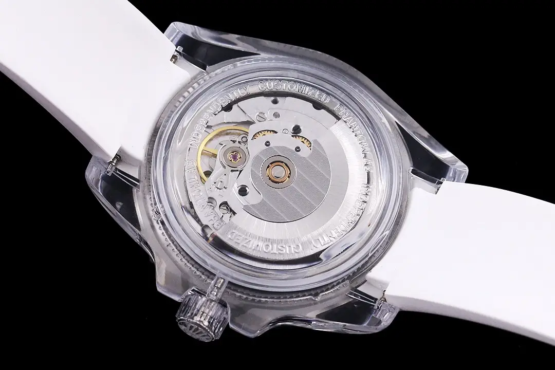 Elegant modern aesthetics and exquisite watchmaking craftsmanship, the first imported crystal “Glass Crystal Material” with excellent hardness and wear resistance has been launched. The texture is pure and transparent, and the white tape is “Fluorine Rubber”, which is one level higher than rubber. A transparent tape “TPE Material” is also included. The overall structure of the Water Ghost remains unchanged, breaking the tight bottom structure for the first time and perfectly interpreting the beauty of the heart. The entire series adopts the Swiss ETA2824 fully automatic movement, with imported blue glow in the dark for the face, rim, grain, and needle, and sapphire glass (blue magnifying glass) crafted with exquisite craftsmanship to create the ultimate luxury! Men’s casual women’s fashionable tool for picking up girls