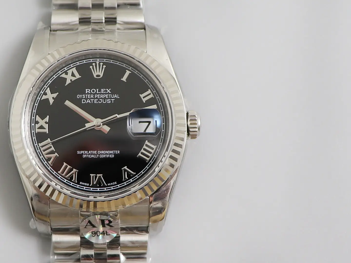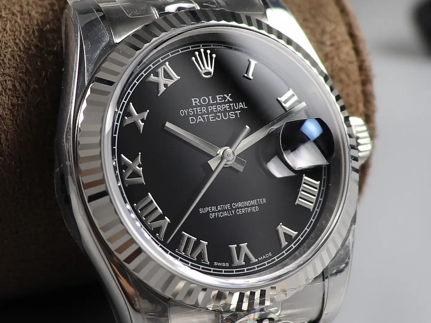 Rolex Datejust Black Roman Dial Fluted Bezel Stainless Steel Jubilee Bracelet