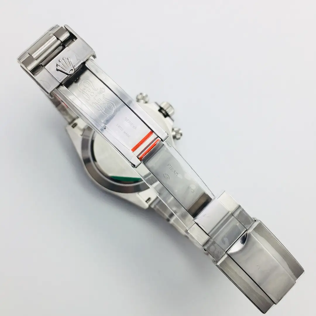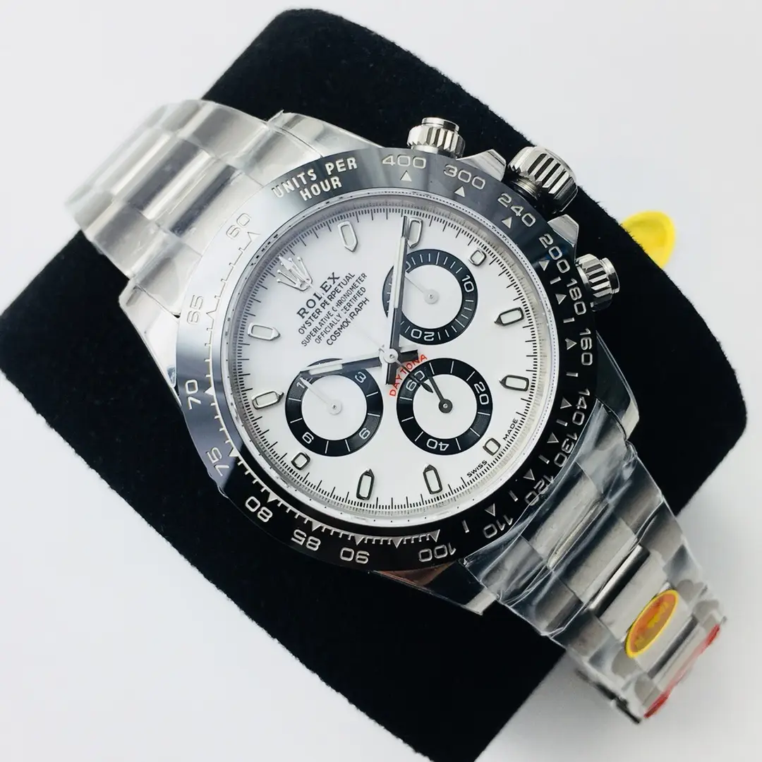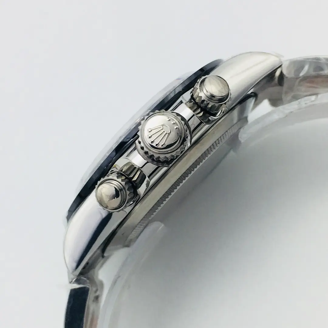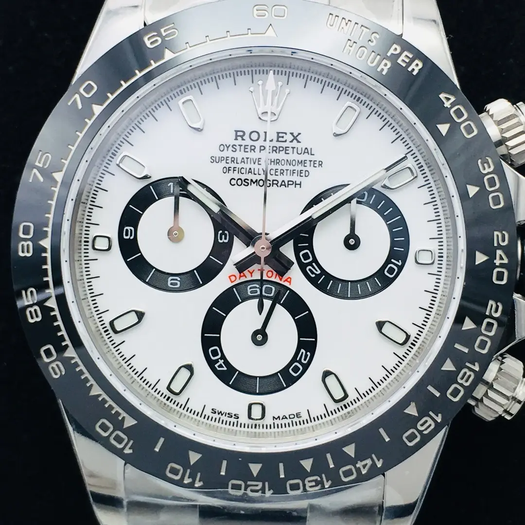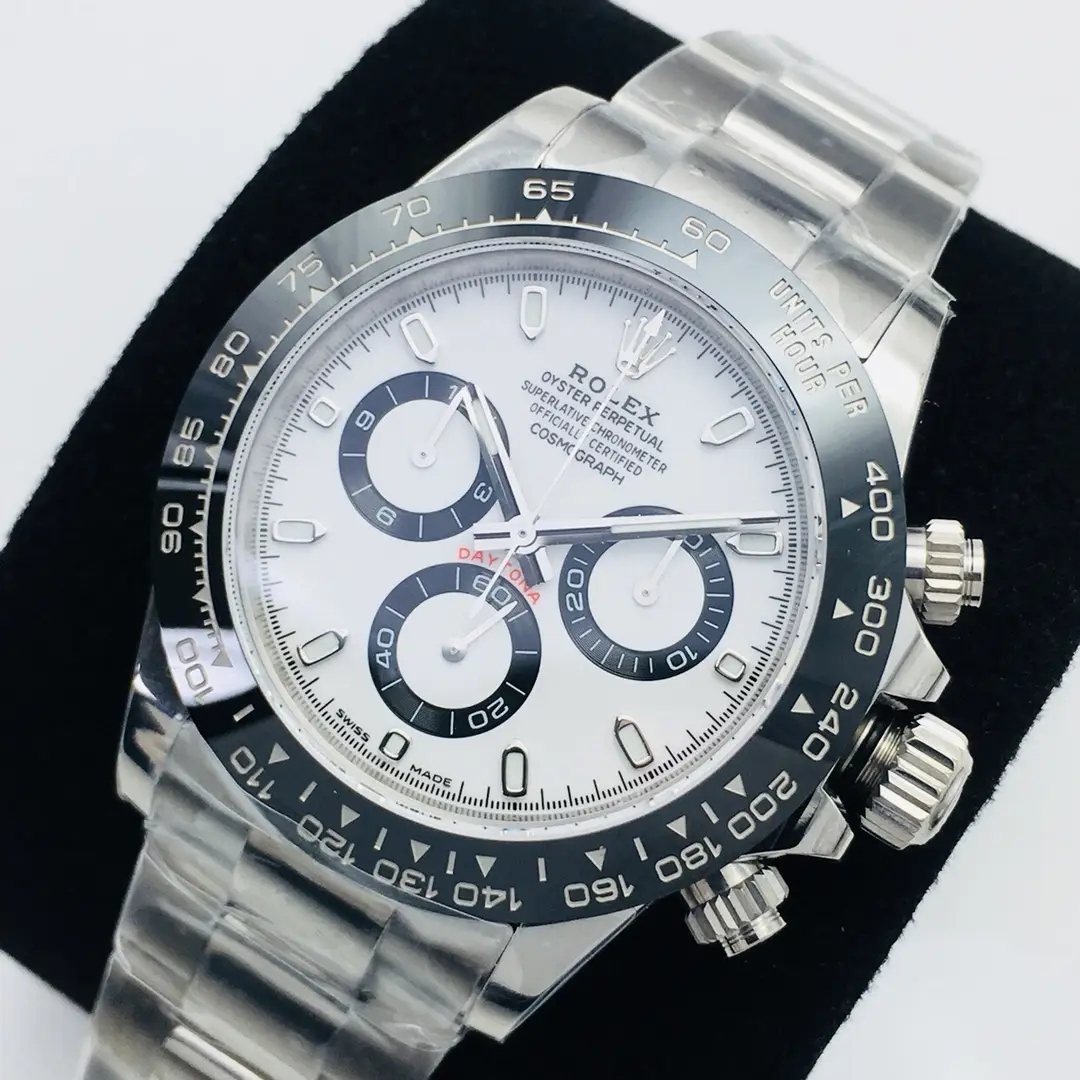 Chrono watch 116500LN-78590 white dial Panda Di, white dial function dial with black circles, enamel and luminous material filling in the middle of the hour hand, blue luminous pointer scale! 904L stainless steel case, scratch resistant ceramic speedometer dial scale electroplated silver, dirt resistant and non fading, engraved on the inner wall of the dial