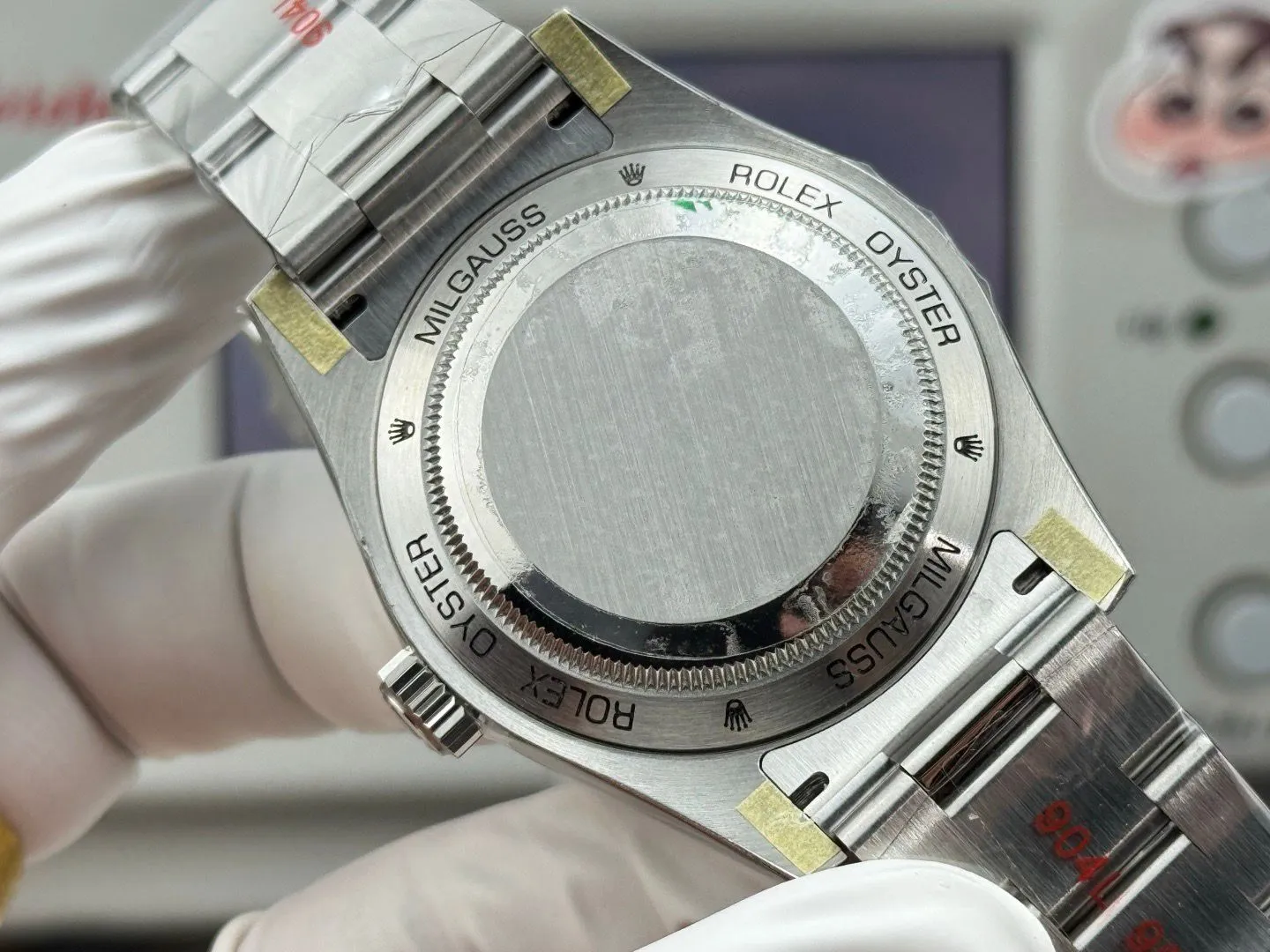 Magnetic MILGAUSS series, three in one, with NFC sensing! Quality assurance! 116400 Lightning Needle Green Glass 904L Latest Version, Blue Disk, Green Disk, White Disk, Black Disk! Anti magnetic dual bottom cover! ✅✅✅ Synchronized with green material sapphire glass, customized with a brand new solid needle shaft 3131 integrated movement size: 40mm, using oyster steel forged steel watch case, belonging to the 904L steel category. This type of superalloys is widely used in high-tech, aviation, and chemical industries, so it must have high corrosion resistance. Oyster steel is not only very durable and easy to polish, but its beauty remains undiminished even in the most extreme environments. The electric blue dial is complemented by a green sapphire glass mirror and the iconic lightning shaped second hand. Rolex MilGauss – Salute to Science! Identify the wristwatch accurately ⌚ Code 6R9999V6 three in one, equipped with NFC induction card, original version, produced, shipped, photographed, best luxury recommendation for gift giving, exclusive quality