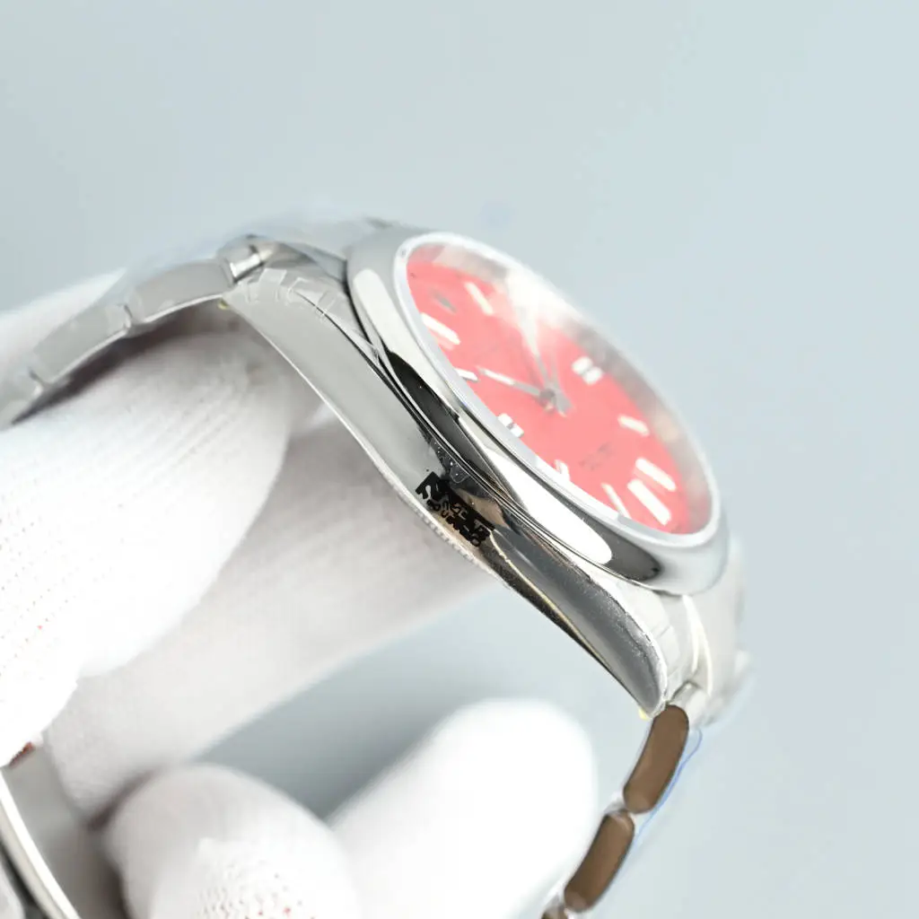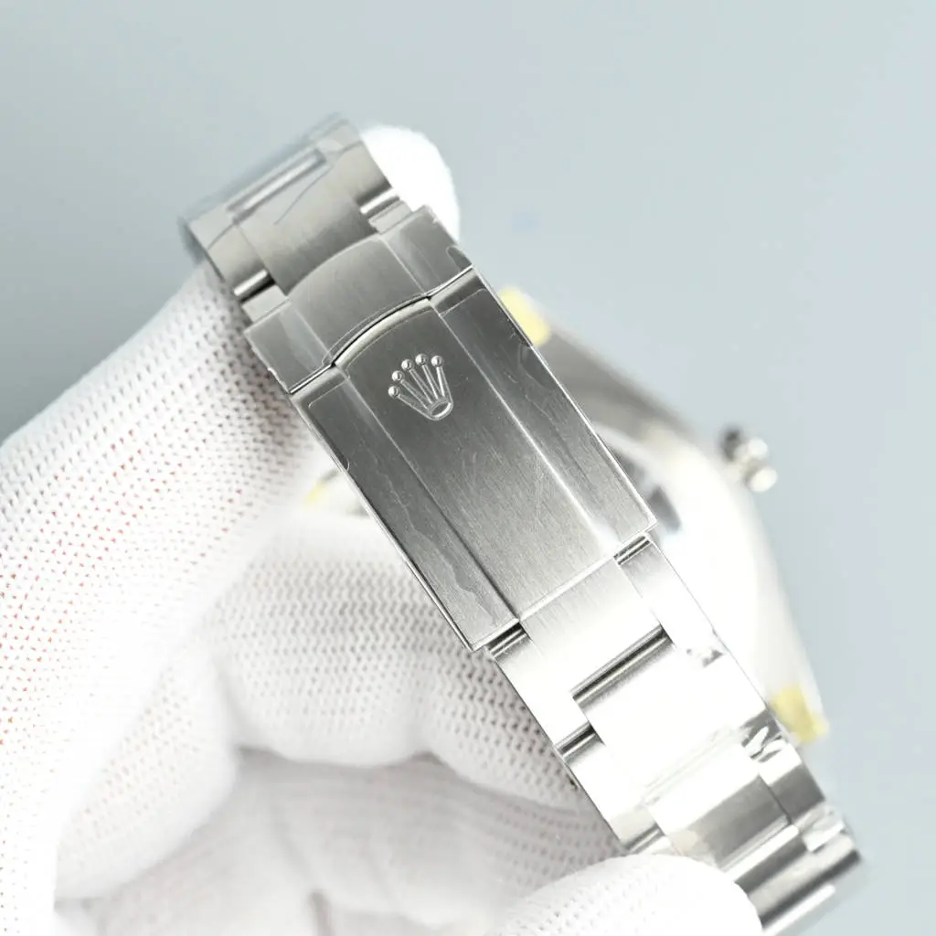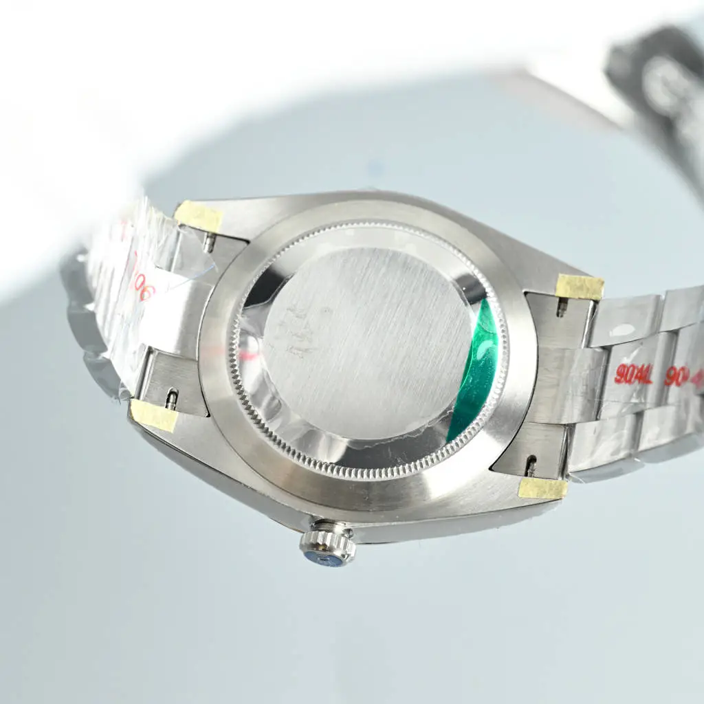 five ️⃣ The 904 stainless steel material is carefully polished, and the two sides of the watch case are polished. The hanging head logo is beautifully presented, making the product more waterproof, achieving a 100 meter waterproof performance;