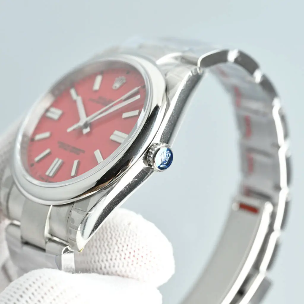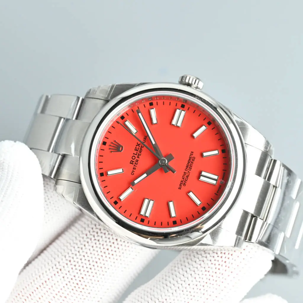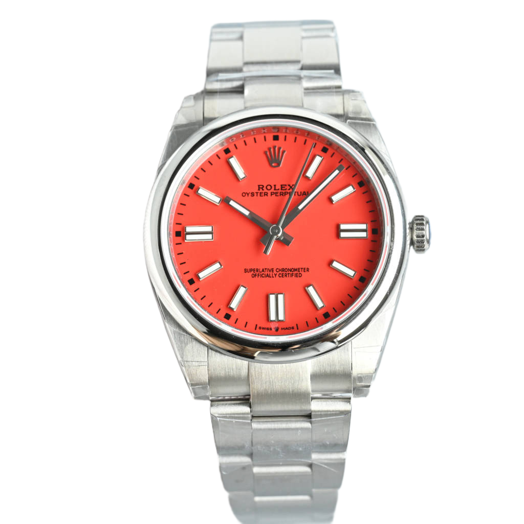 Rolex Oyster Perpetual 41 coral dial smooth bezel stainless steel watch