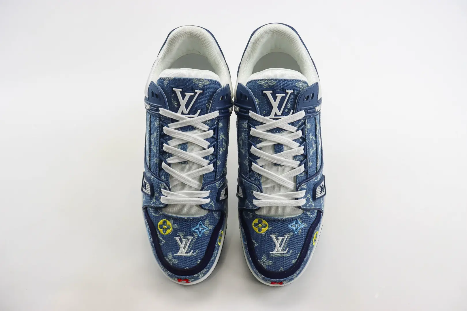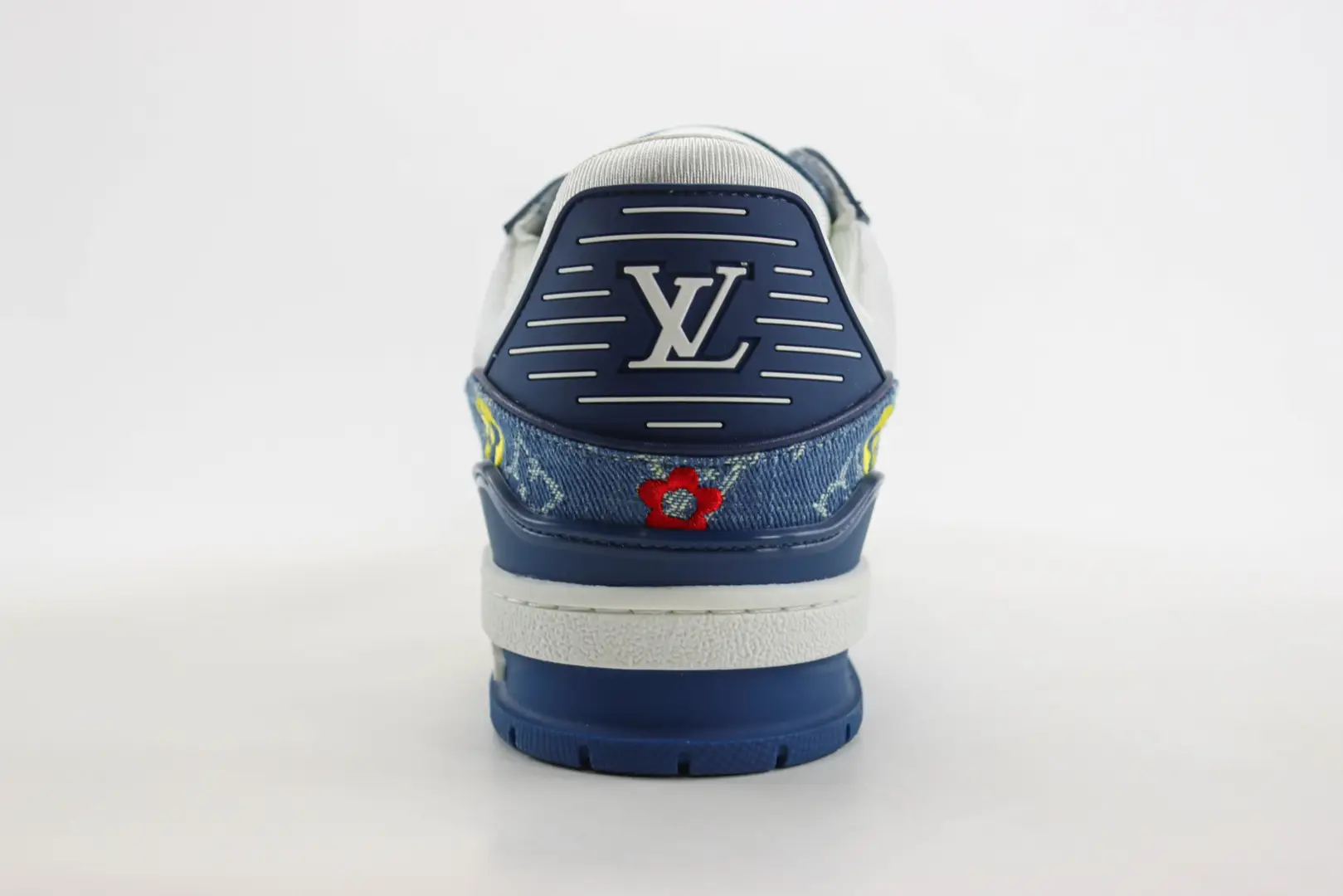 Trainer sneakers use Monogram denim fabric to explore the mysteries of color and proportion, telling Virgil Abloh’s creative expression of retro basketball shoes. The intricate shoe upper requires seven hours of meticulous sewing to complete, while the contrasting rubber outsole upgrades the trendy style