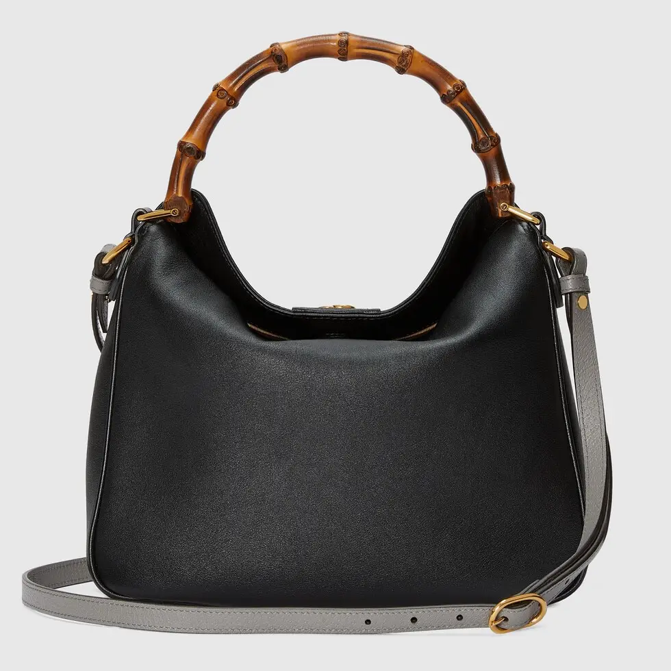 This small shoulder bag cleverly blends two highly recognizable elements of the brand – bamboo handle and double G accessories, giving the entire design a unique charm. This accessory is crafted with black leather craftsmanship, paired with gray contrasting leather shoulder straps, making the entire design even more eye-catching.