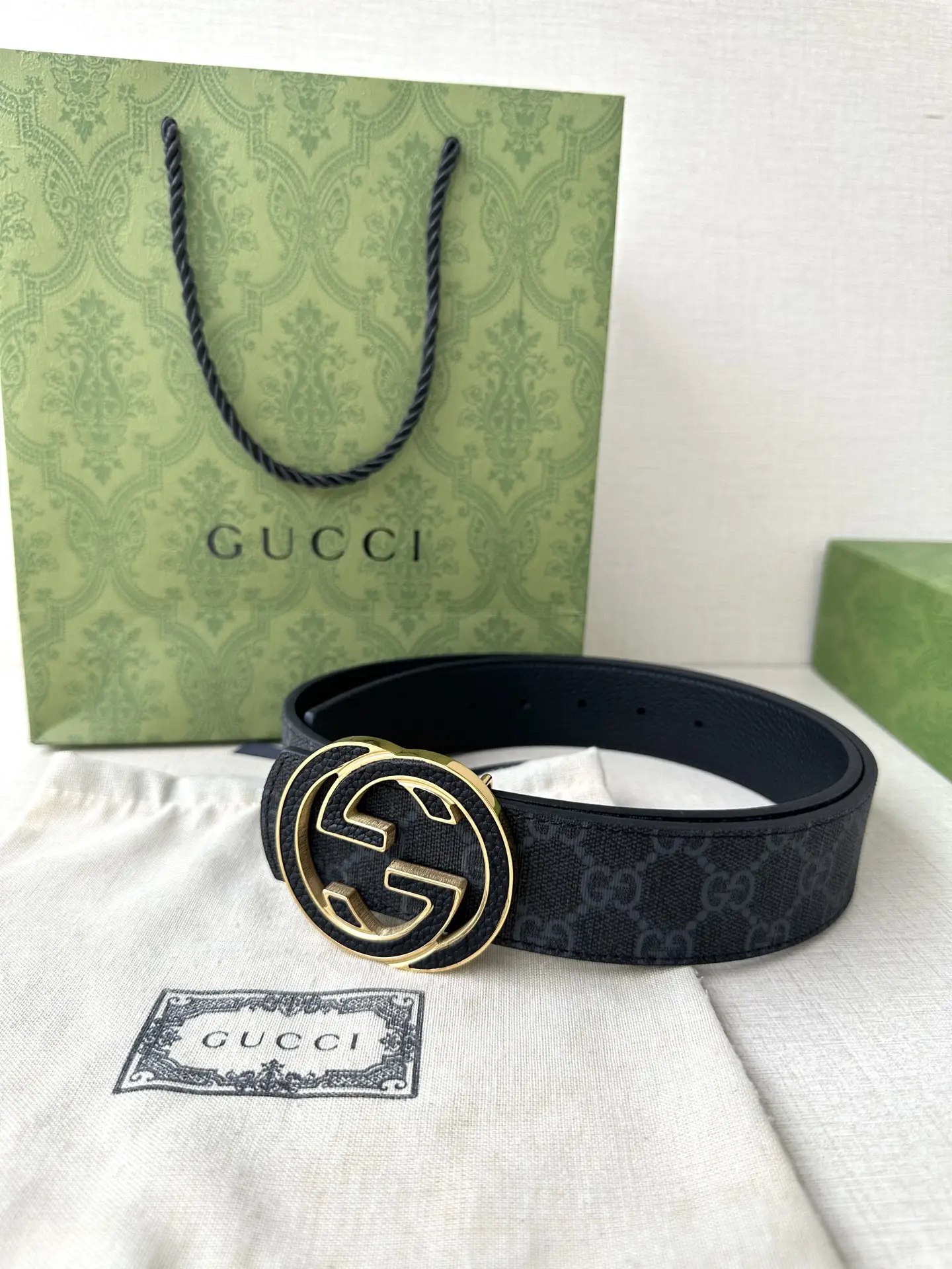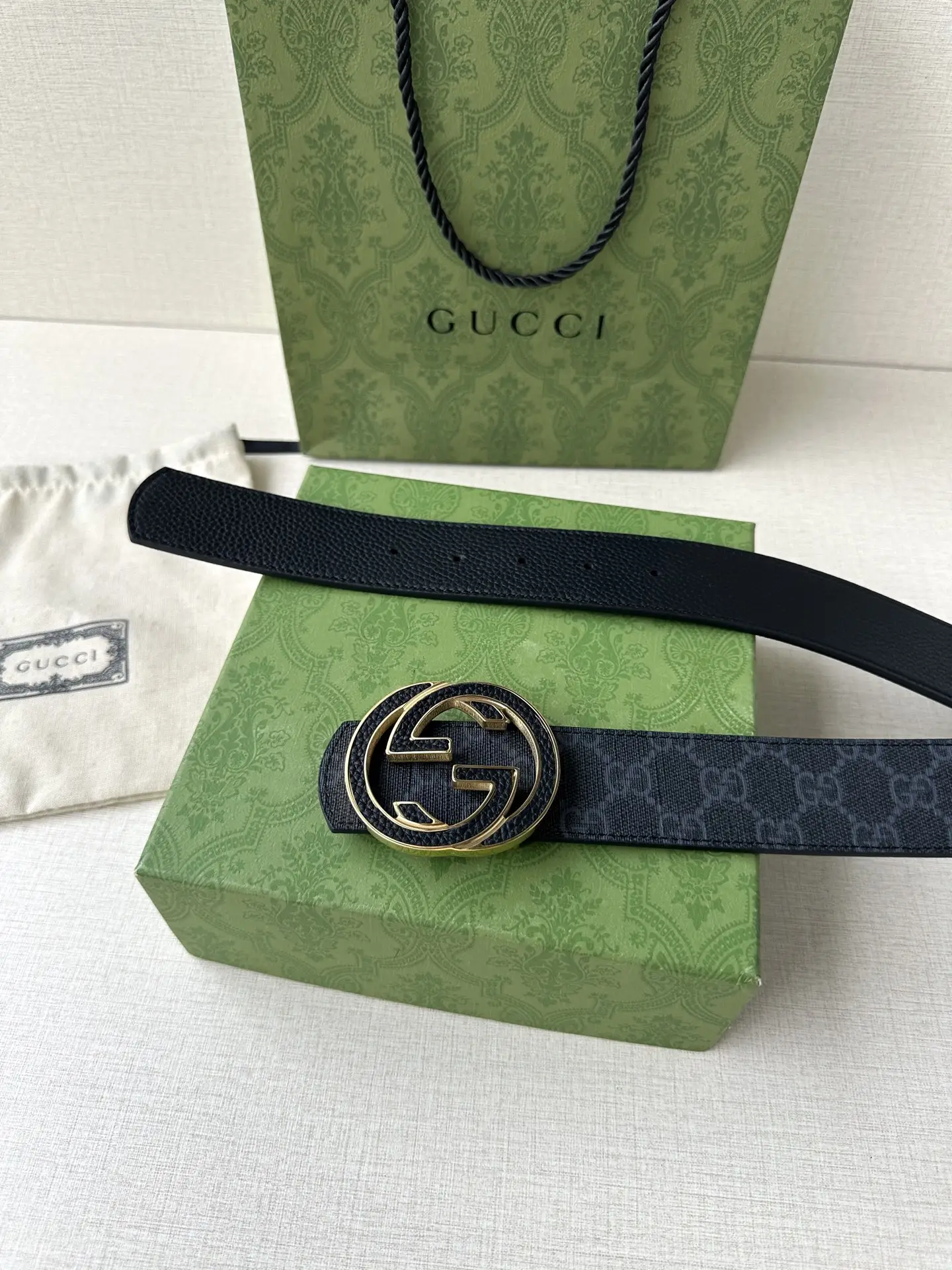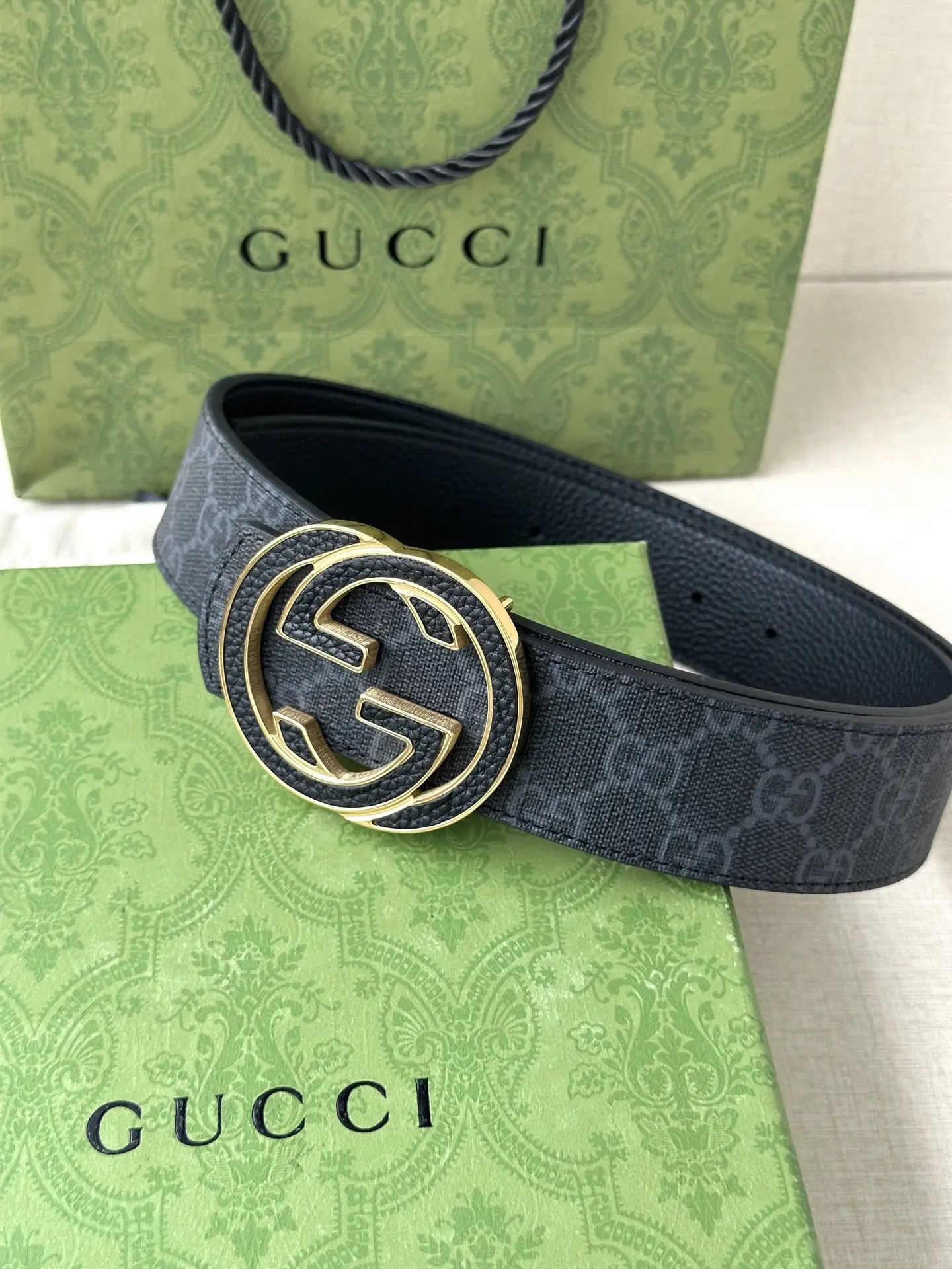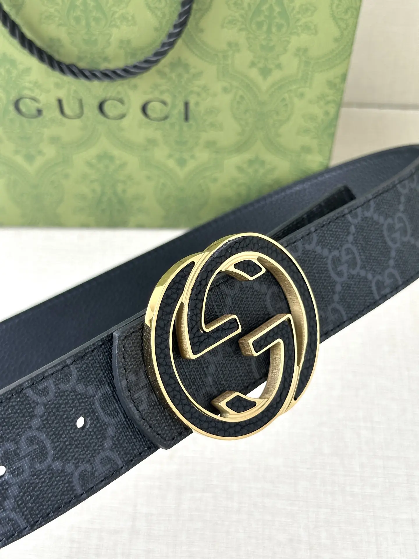 Classic elements. This belt is crafted with cowhide craftsmanship, cleverly embellished with interlocking double G buckles, and paired with embossed cowhide. This belt is crafted with grey cowhide on the front and black cowhide on the back, providing more styling options.