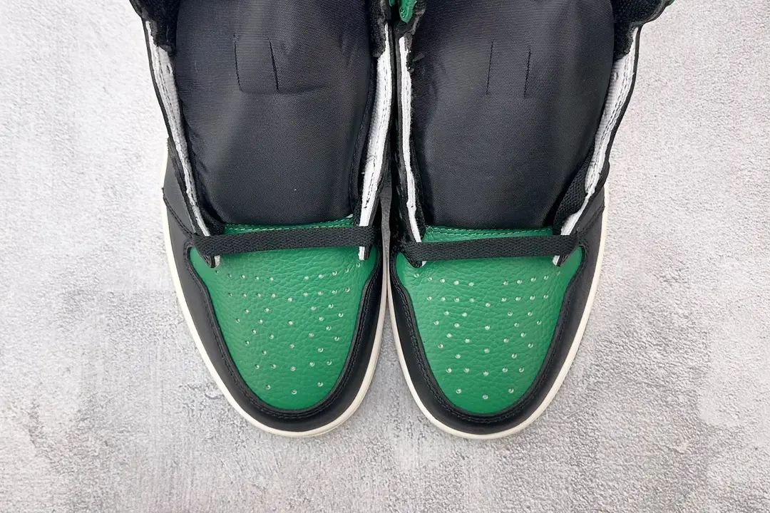 Jordan Brand expanded their “Black Toe” line up with the Jordan 1 Retro High Pine Green, now available on StockX. This design is reminiscent of the Bred Toe release of 2018 only instead of red the toe box and ankle inserts are paneled with pine green hues.