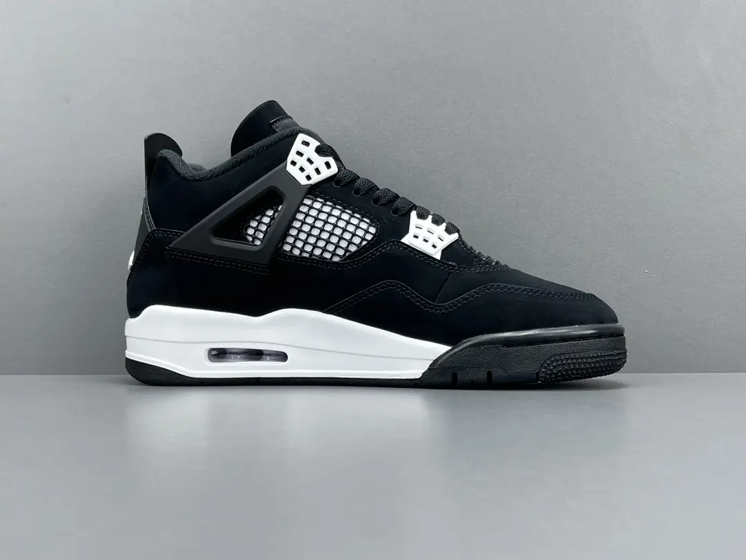 The Air Jordan 4 Retro White Thunder (GS) is a striking new release that pays homage to one of the most iconic colorways in Jordan Brand history. Inspired by the original Black and Yellow Thunder 4s, this grade school version brings a fresh take to the classic design. The upper features a predominantly black nubuck material, providing a sleek and bold look, while white accents create a sharp contrast. The Jumpman logo appears on both the tongue’s flight patch and the heel, ensuring that this sneaker remains true to its roots while introducing a new visual twist.