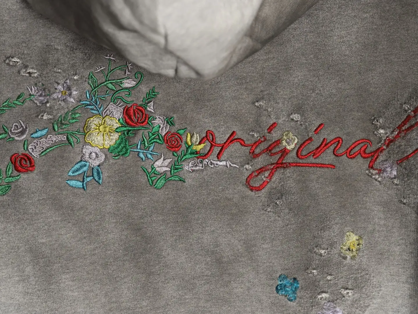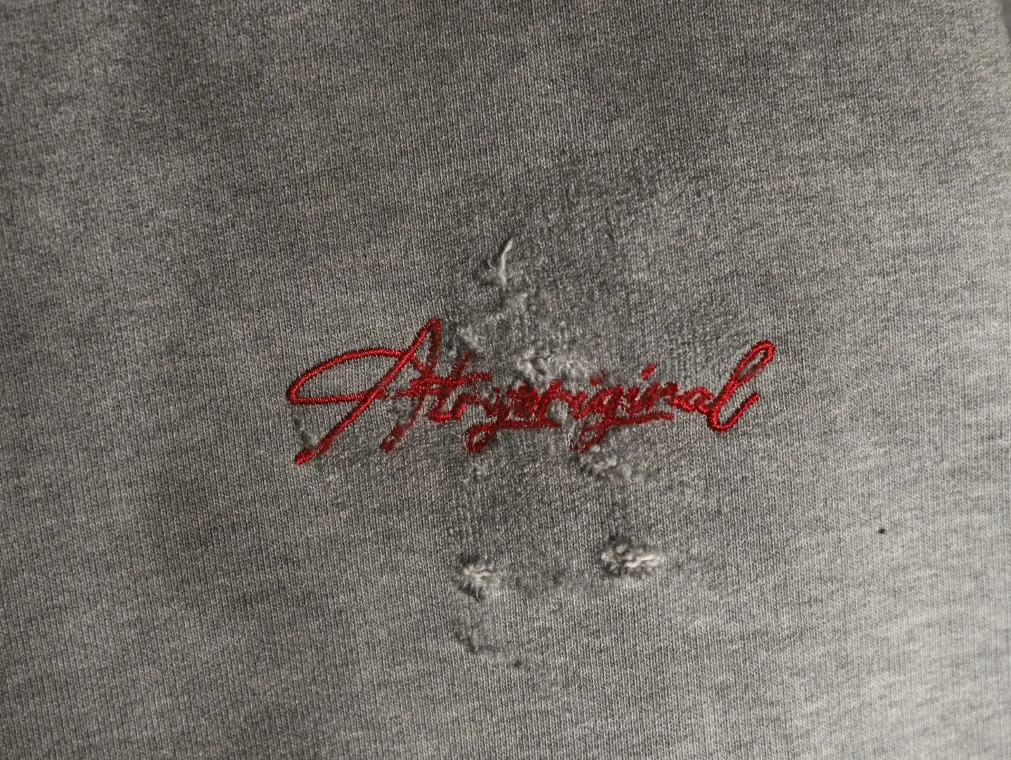 The logo embroidery adopts the Tajima embroidery technique, and the washed and worn garment presents a lazy overall style