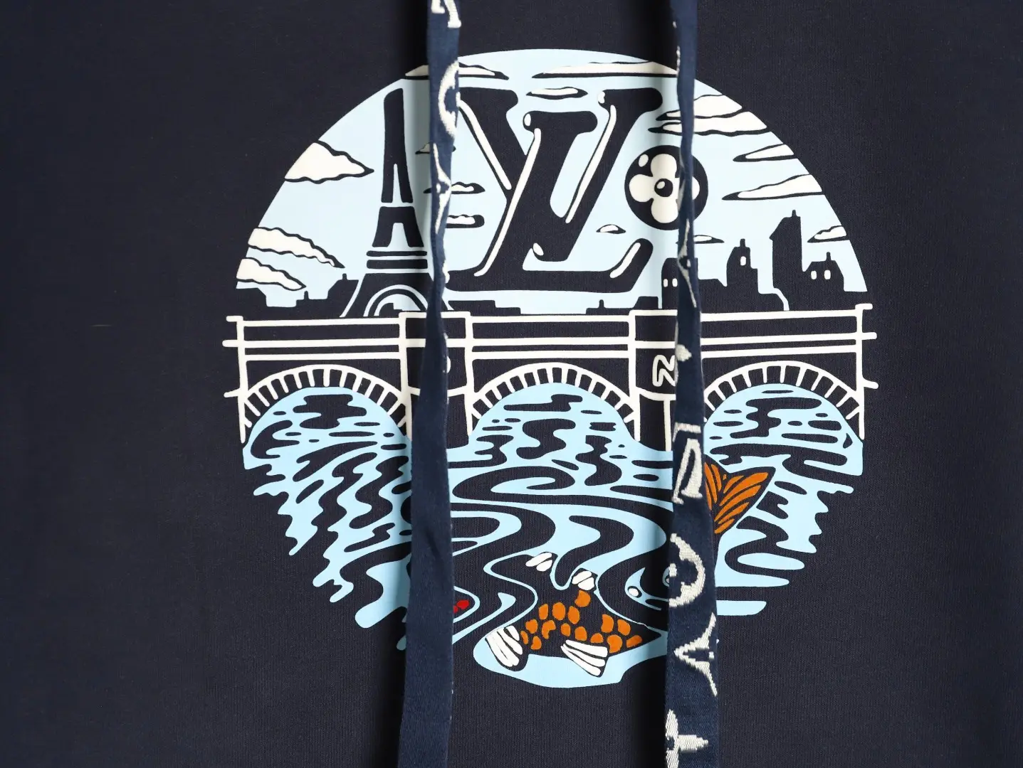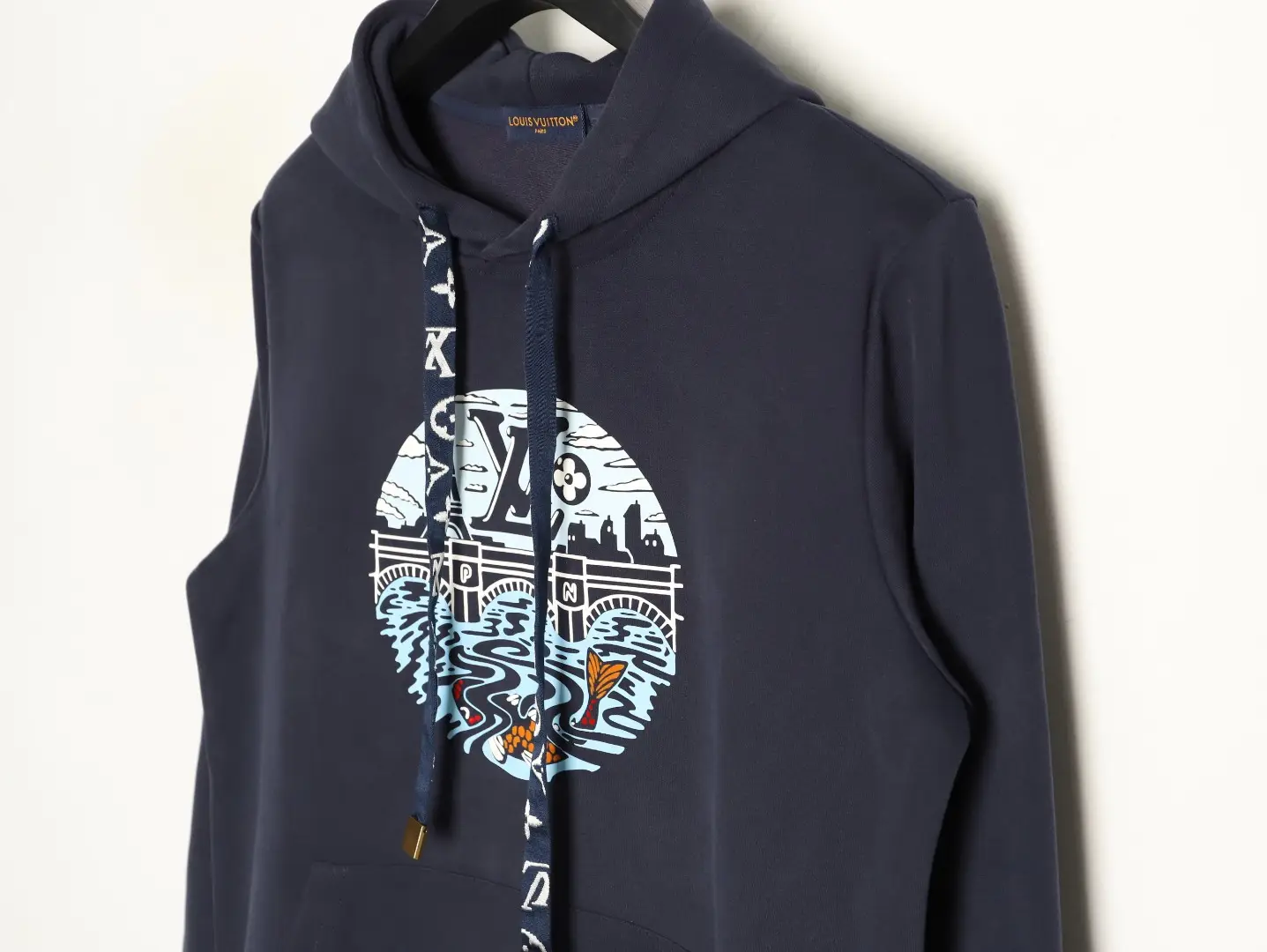 The new hoodie is made of carefully selected high-quality cotton and features a brushed process, providing a rich plush feel and a soft and skin friendly touch, with upgraded warmth. Fit or slightly loose fit, with sharp lines and no bloating. Exquisite workmanship, not easily deformed after long-term wear. The customized drawstring is even more delicate, and the real finishing touch is the metal “Golden Bell” pendant hanging below it, which sways with each step and makes a crisp and low return sound. The latest pattern from the autumn and winter fashion show is used on the chest, combining the luxurious touch of flocking, the three-dimensional floating carving of foam glue, and the fine expression of printed patterns through three major techniques