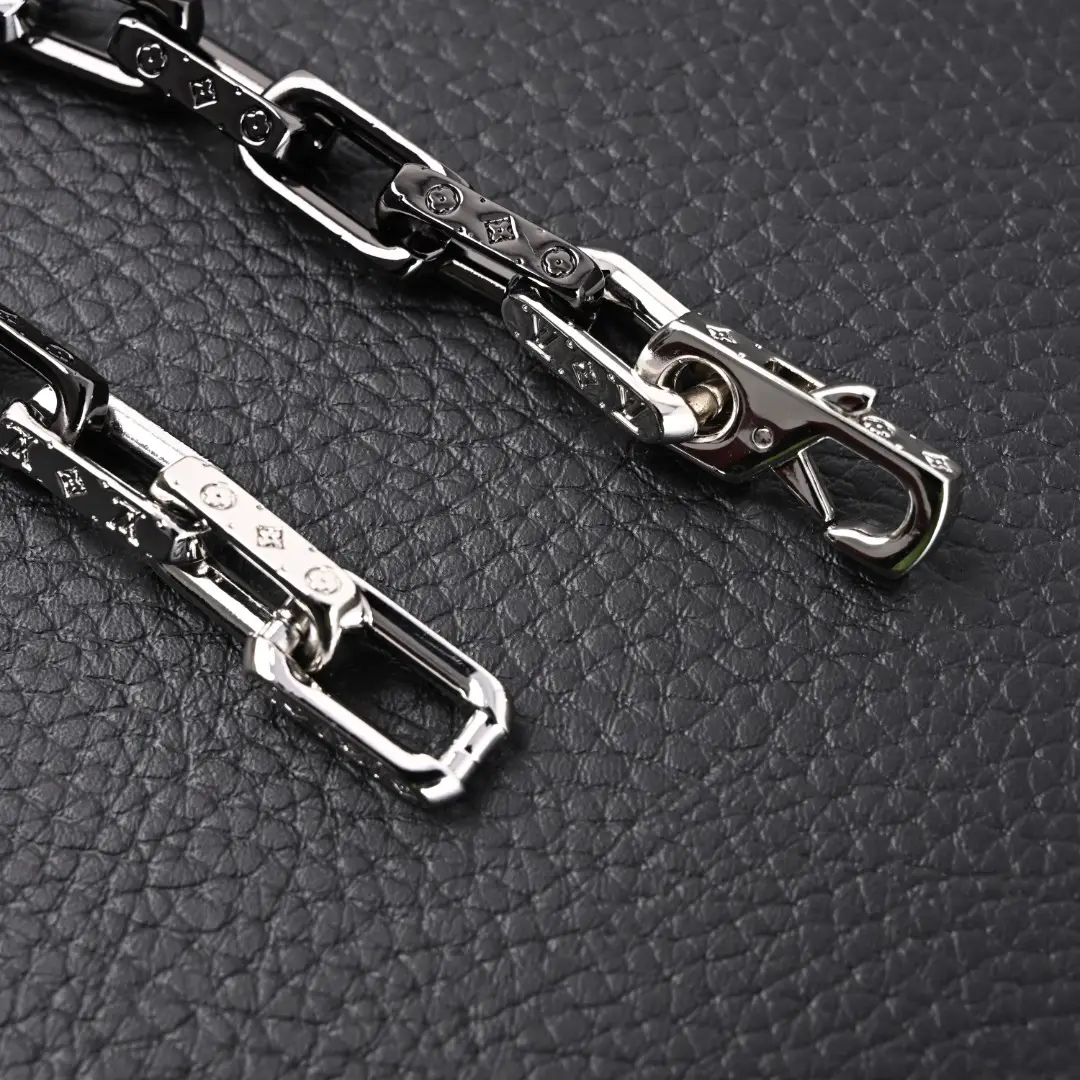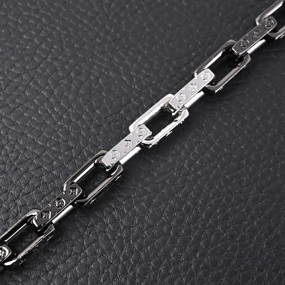 The new summer feel and color spliced bamboo necklace bracelet showcases Virgil Abloh’s interest in workwear and industrial fashion as the artistic director of men’s clothing. Up close, you can appreciate the brand’s exquisite craftsmanship as always. Some links are decorated with the LV initials at the edges, while other links are embedded with this logo inside. Colorful finishes present a fashionable splicing effect
