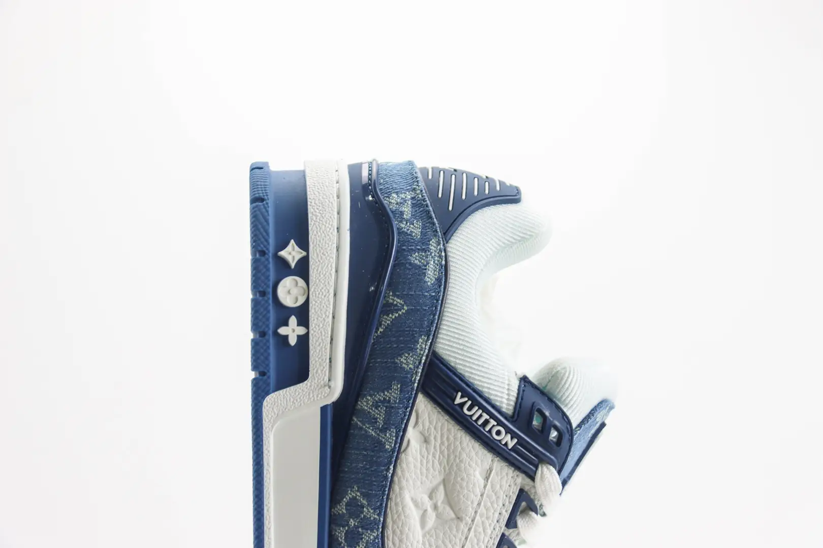 Art director Virgil Abloh’s interpretation of retro basketball shoes shows that Trainer sneakers are embedded in gel, and the outsole is decorated with Monogram flower pattern Monogram denim rubber outsole is decorated with Vuitton logo, and the outsole is decorated with Monogram flower pattern