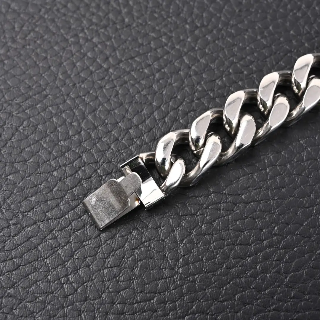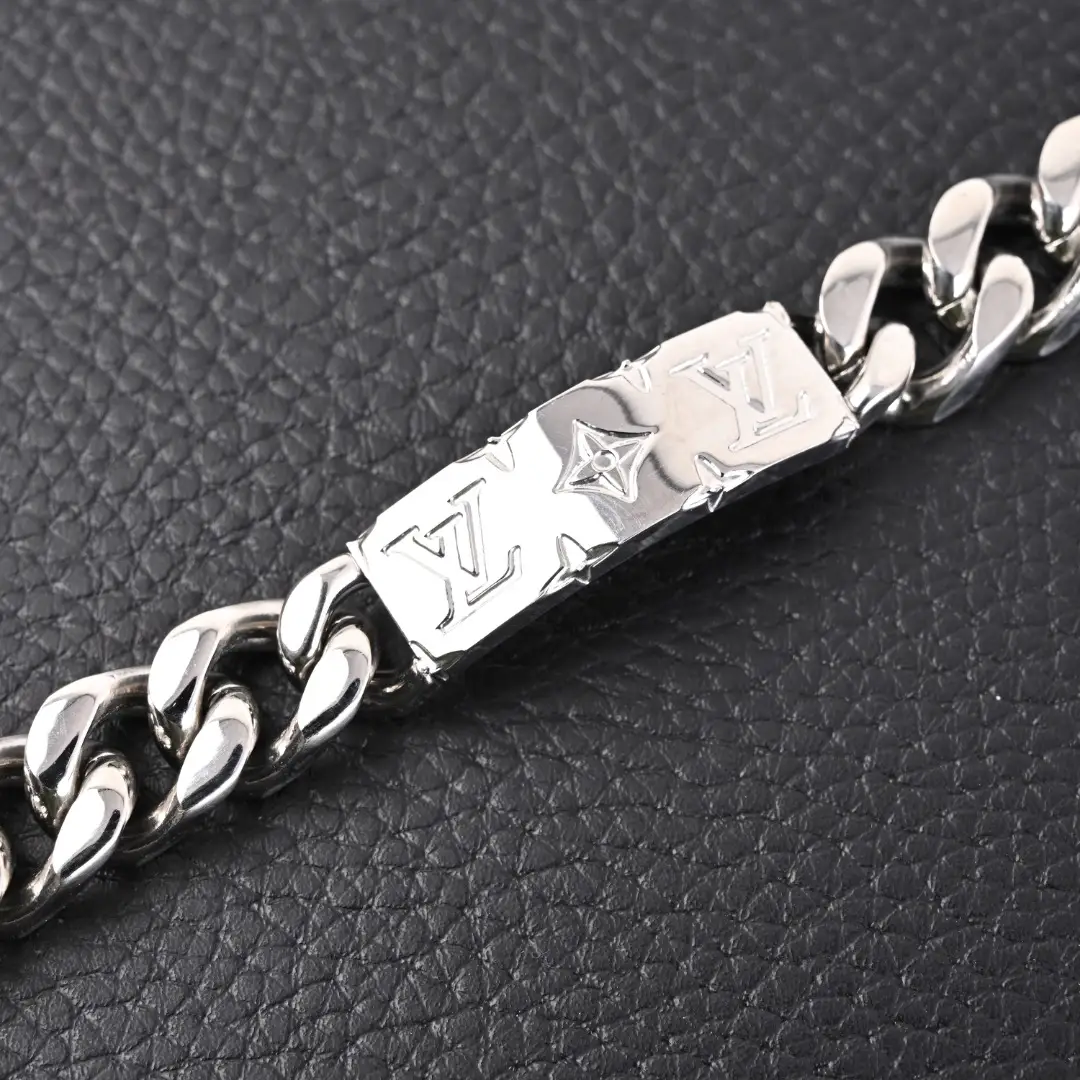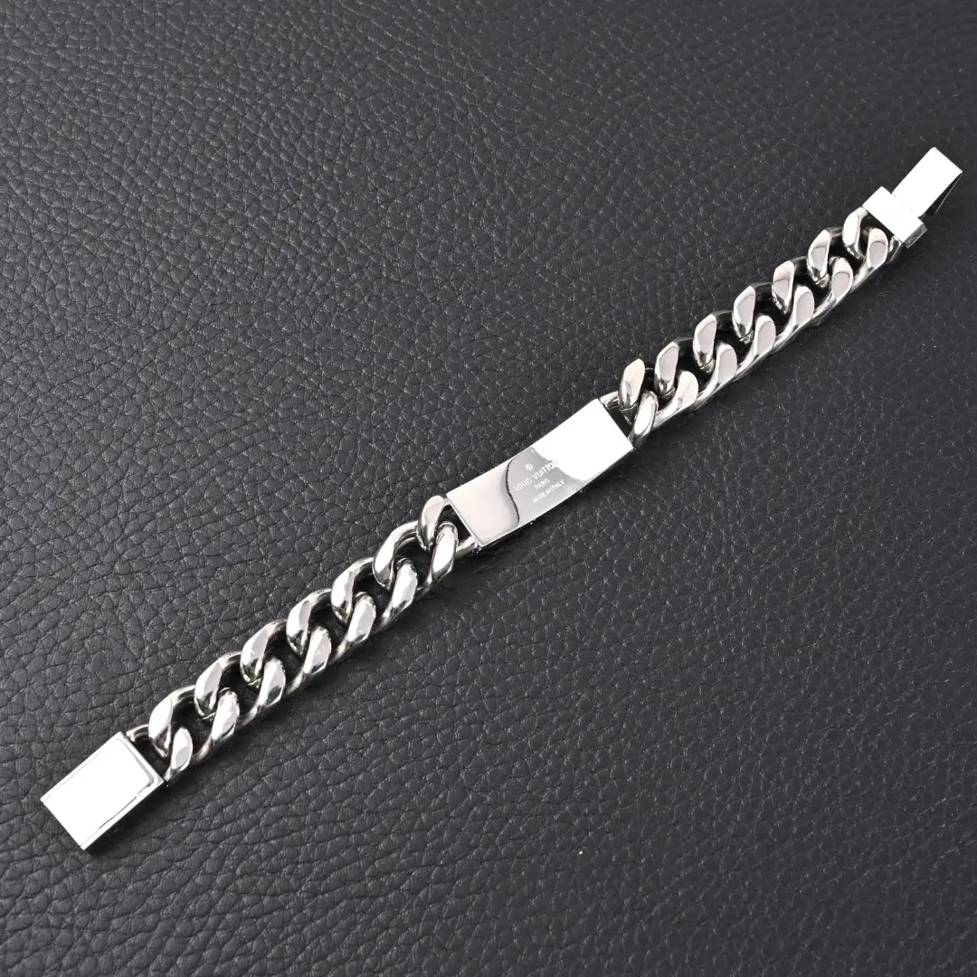 The AM jewelry collection combines exquisite Monogram carved patterns with shiny metal finishes, showcasing a distinct design personality and rugged styling temperament. This chain bracelet is a daily essential accessory for every man