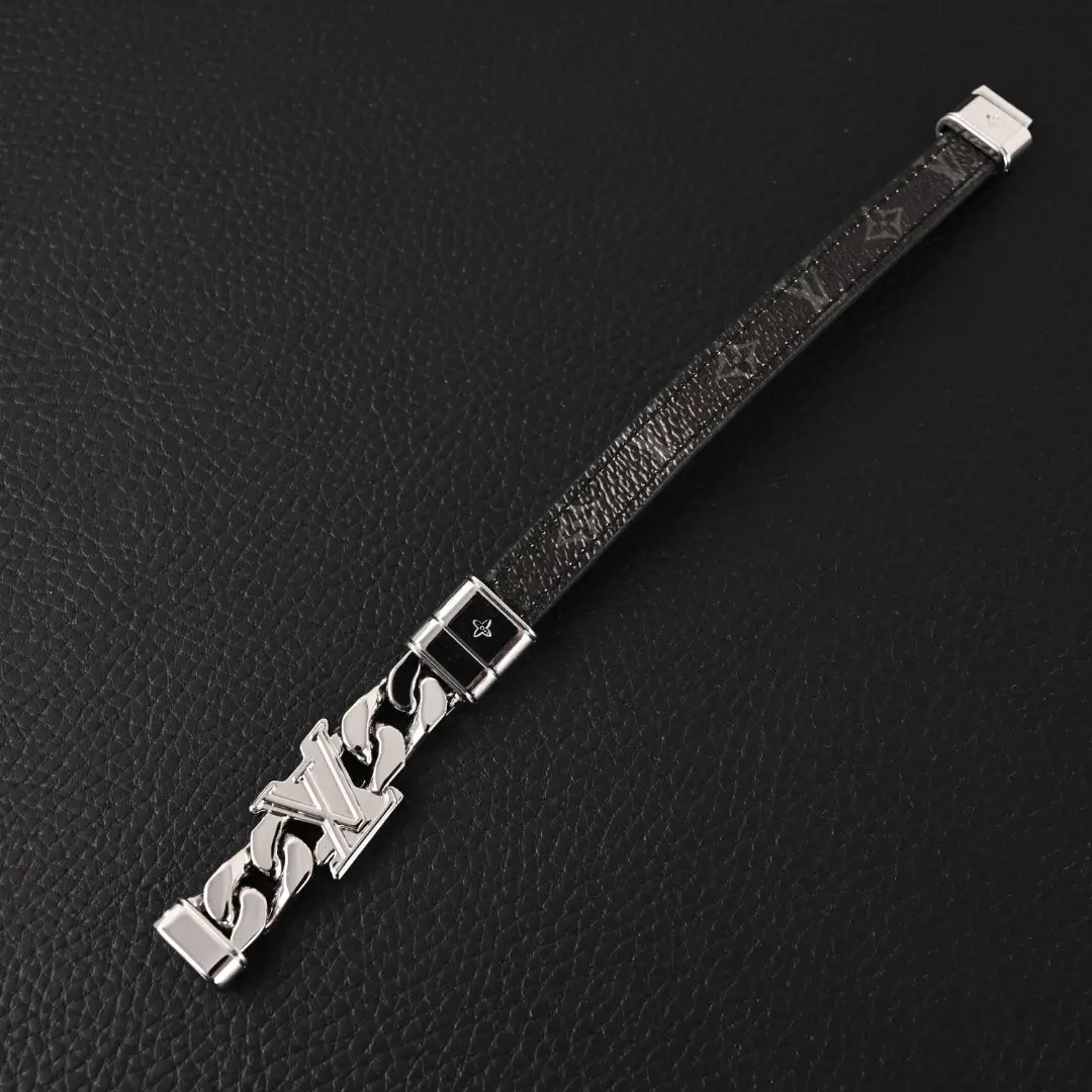 The bracelet is crafted with leather and classic canvas to create a unique decorative band, and the LV letters are intricately carved on both sides of the MNG metal chain, combining avant-garde style and a sense of grandeur, injecting rock style into beloved outfits.