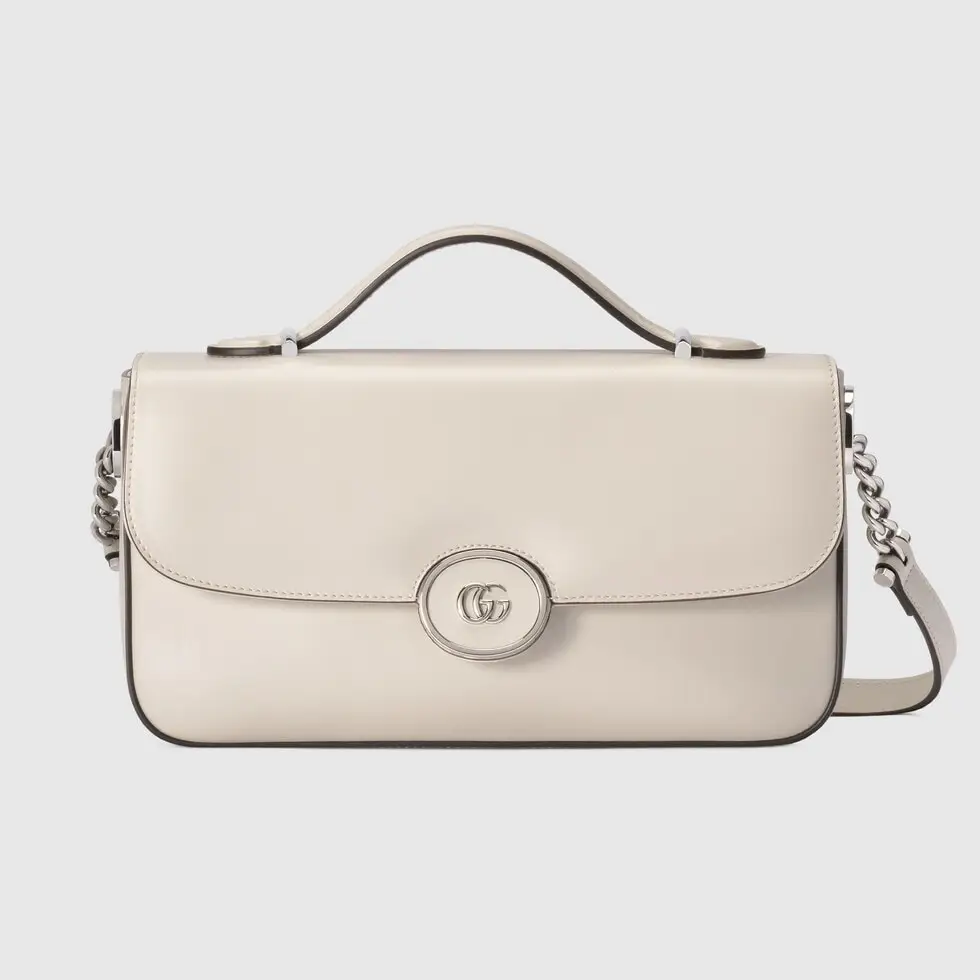 Gucci’s 2023 early autumn collection ingeniously blends collection elements with practical functionality. In the end, a single product that showcases the modern design aesthetics of the brand was created, ingeniously embellishing the brand’s classic elements and beloved brand logo. This small shoulder bag is crafted with white leather and cleverly incorporates a mini sized double-G logo.
