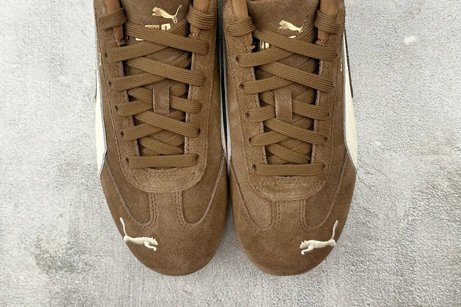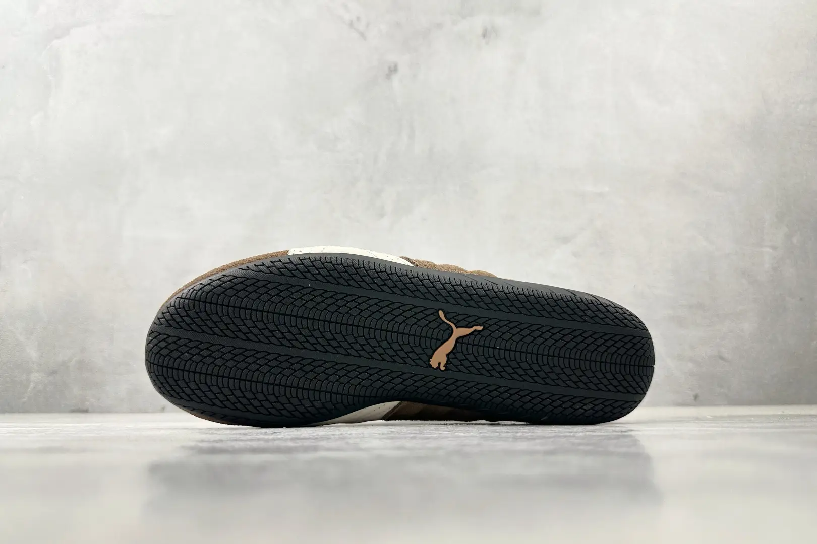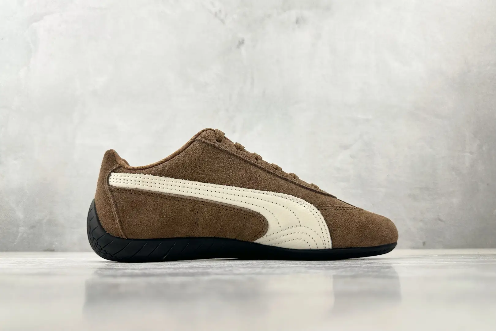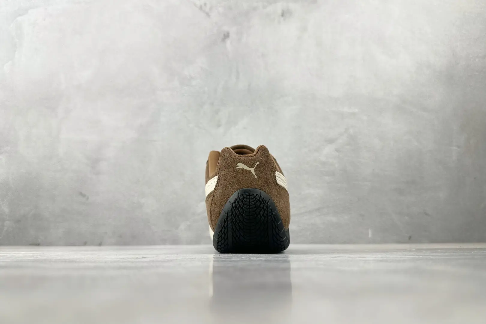 The sub molding “Mengbang” molding process truly splices the shoe upper to prevent pig killing. PUMA, Puma Speedcat series, deep brown