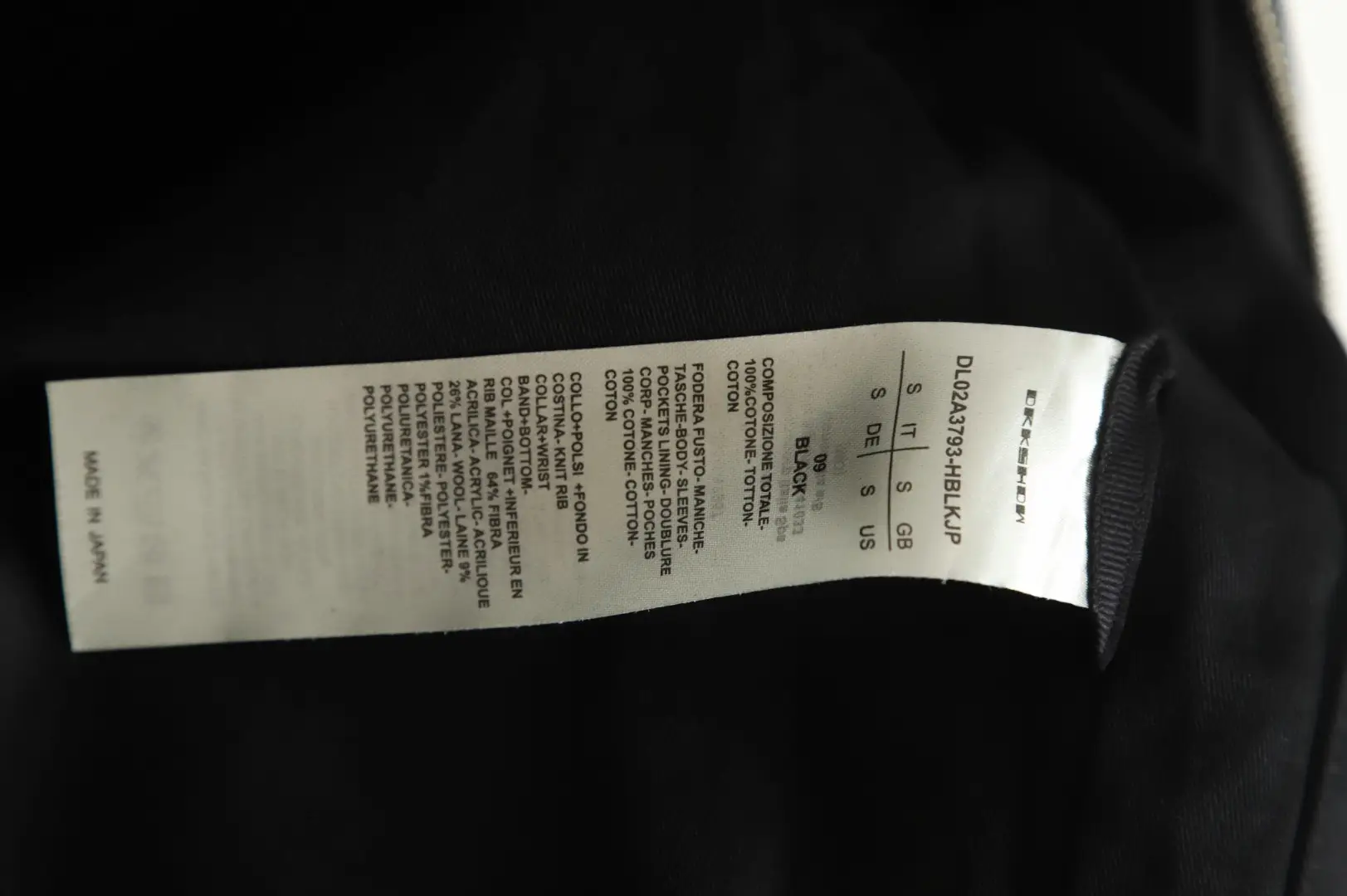 The Ma-1 fabric we are looking at is made of imported Japanese twill black warp and black weft unreinforced denim fabric, which feels very hard to the touch. This fabric cannot be sewn by ordinary factories, and only a professional Japanese factory that produces jackets can have such thick needle equipment. It took a lot of effort. This collar label is made of special customized lychee pattern, top layer cowhide material, unconventional style label, customized zipper button