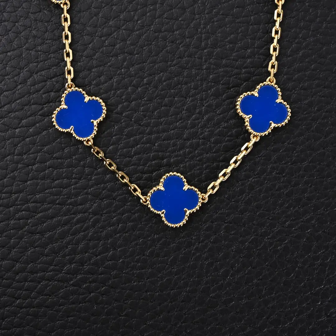 This year’s big moves keep coming, new colors are so beautiful that they explode! This blue is super mysterious, super charming, and super skin whitening. It appears Yunnan color under light, deep blue under no light, and has a semi transparent jelly like texture when translucent. It looks so good that you can’t take your eyes off it. It is 925 silver plated with 18K gold, the original diamond buckle, the original chain body thickness, natural blue agate, gold-plated stone cutting, and seamless inlay.