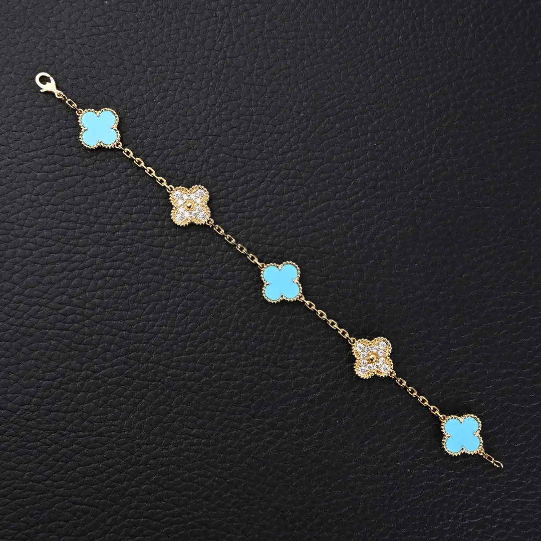 Van Cleef & Arpels Lake Water Green Fritillaria Clover Bracelet